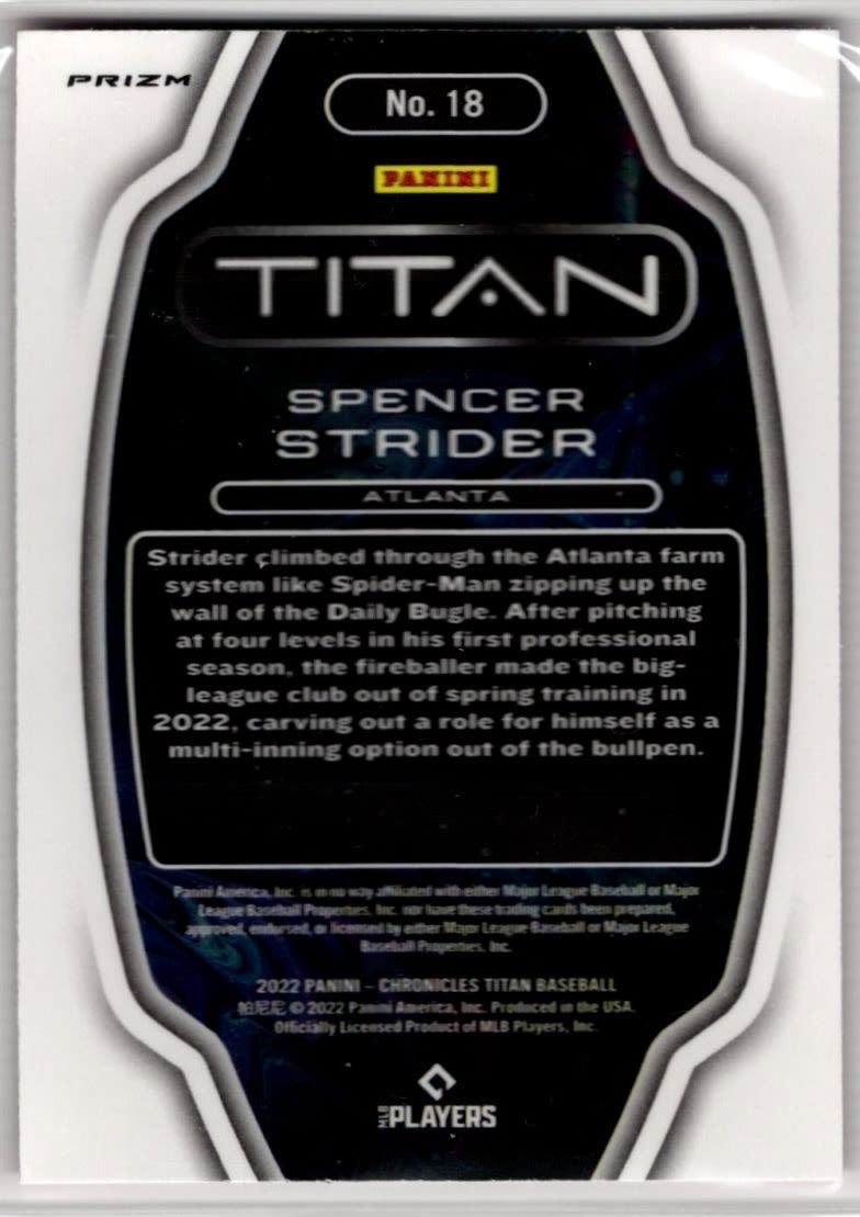 Spencer Strider 2022 Panini Chronicles Titan Pink Pulsar Prizm Rookie Card #18
