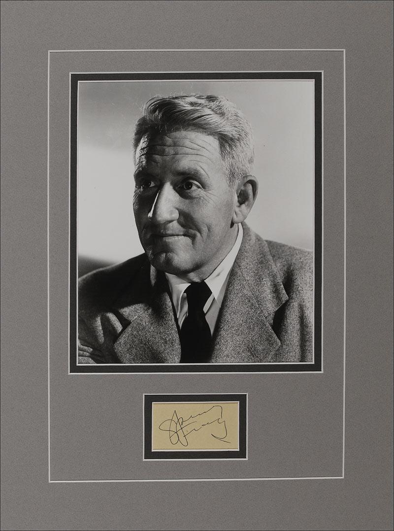 Vintage fountain pen signature on a yellow 2.5 x 1.5 slip. Double matted to an overall size of 12 x 16. In fine condition, with a trivial spot near Tracy’s last name. Pre-certified PSA/DNA and RRAuction COA.