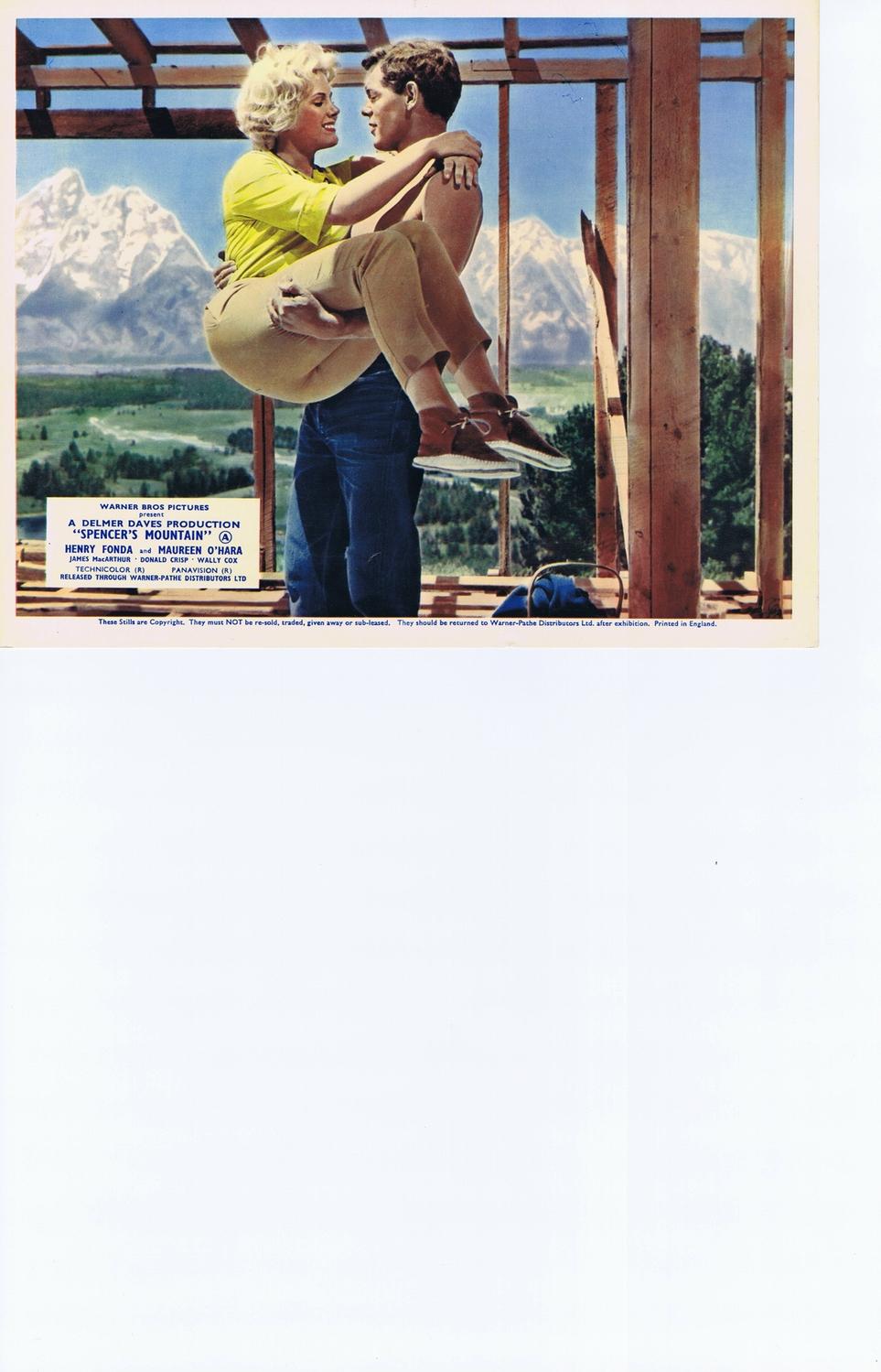 7 color 8x10 card stocks . Spencer's Mountain was released in 1963 and stars Henry Fonda, Maureen O'Hara and James MacArthur.