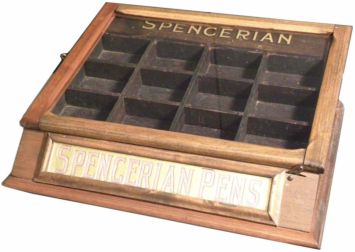Spencerian Pens Store Display Case. Case complete with compartments for pen tips. Excellent condition. 14 3/4 X 5 X 12 3/4 inches.