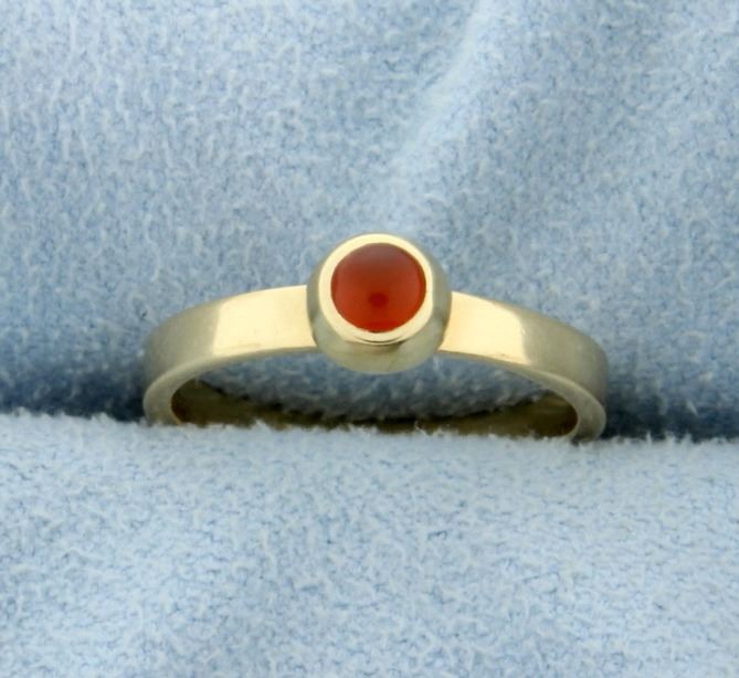 In 14K yellow gold there is a 3.5mm spessarite garnet gemstone with great orange color. Size 4 1/2 2.2g