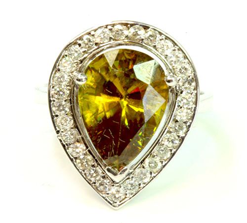 Sphene Pear shape 6.20CT / Diamond 0.63CT 14K White Gold Ring 5.67 Gram