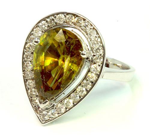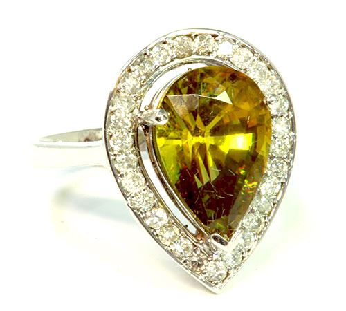 Sphene Pear shape 6.20CT / Diamond 0.63CT 14K White Gold Ring 5.67 Gram