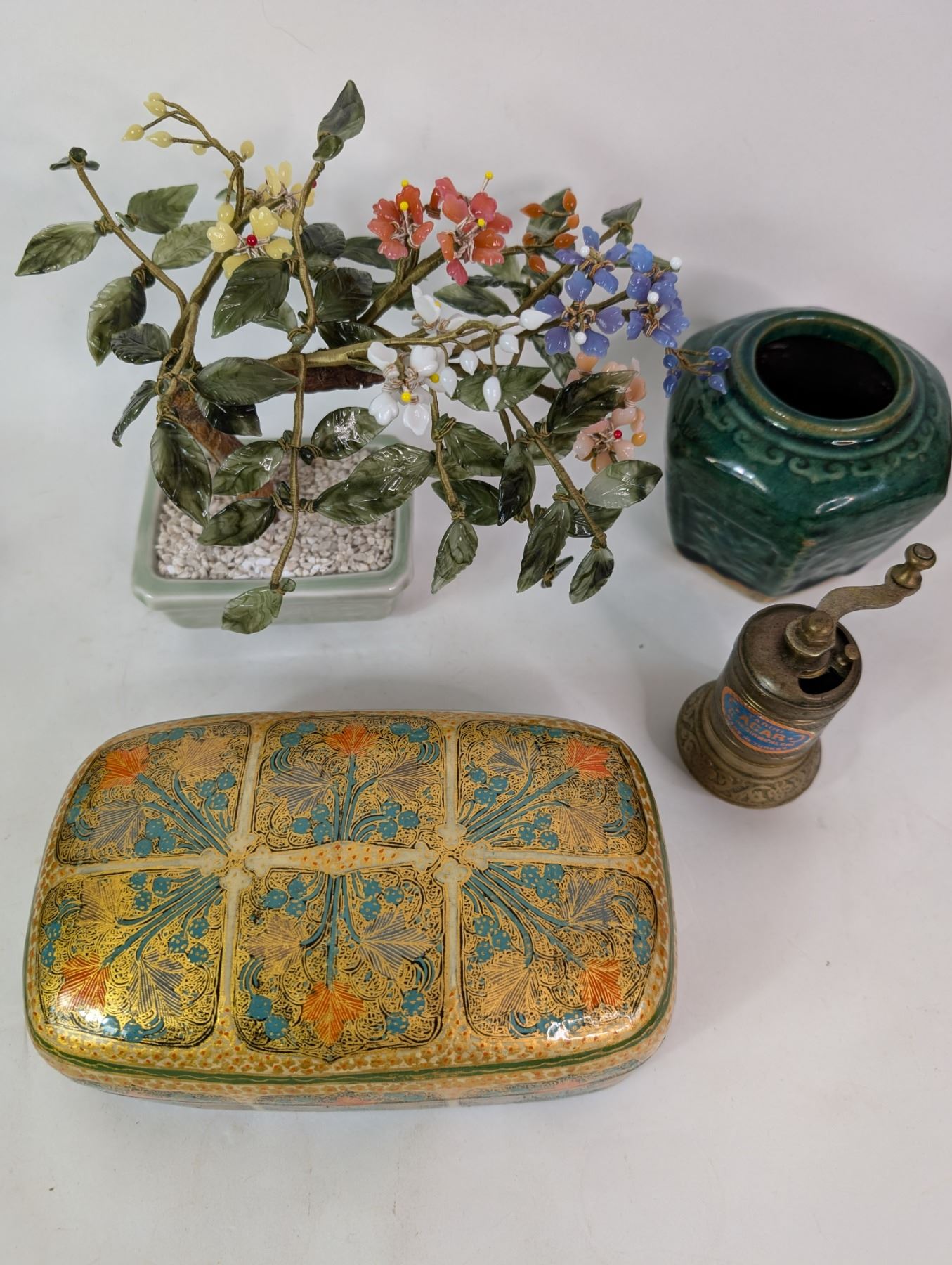 Spice Grinder Trinket Box and Jade Bonzi Plant