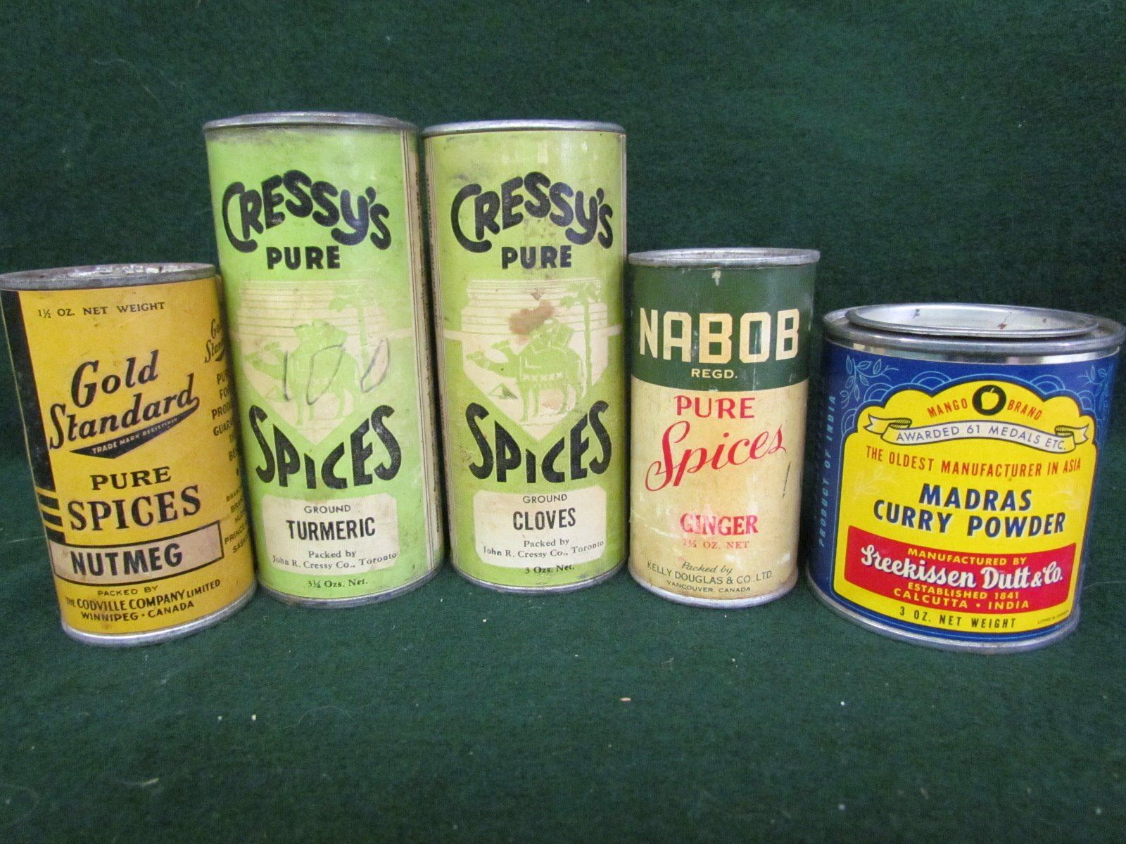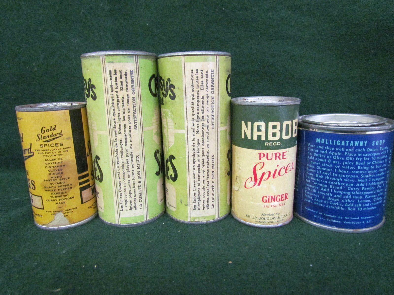 Spice cans - Nabob, Mango Brand, Cressy's, Gold Standard