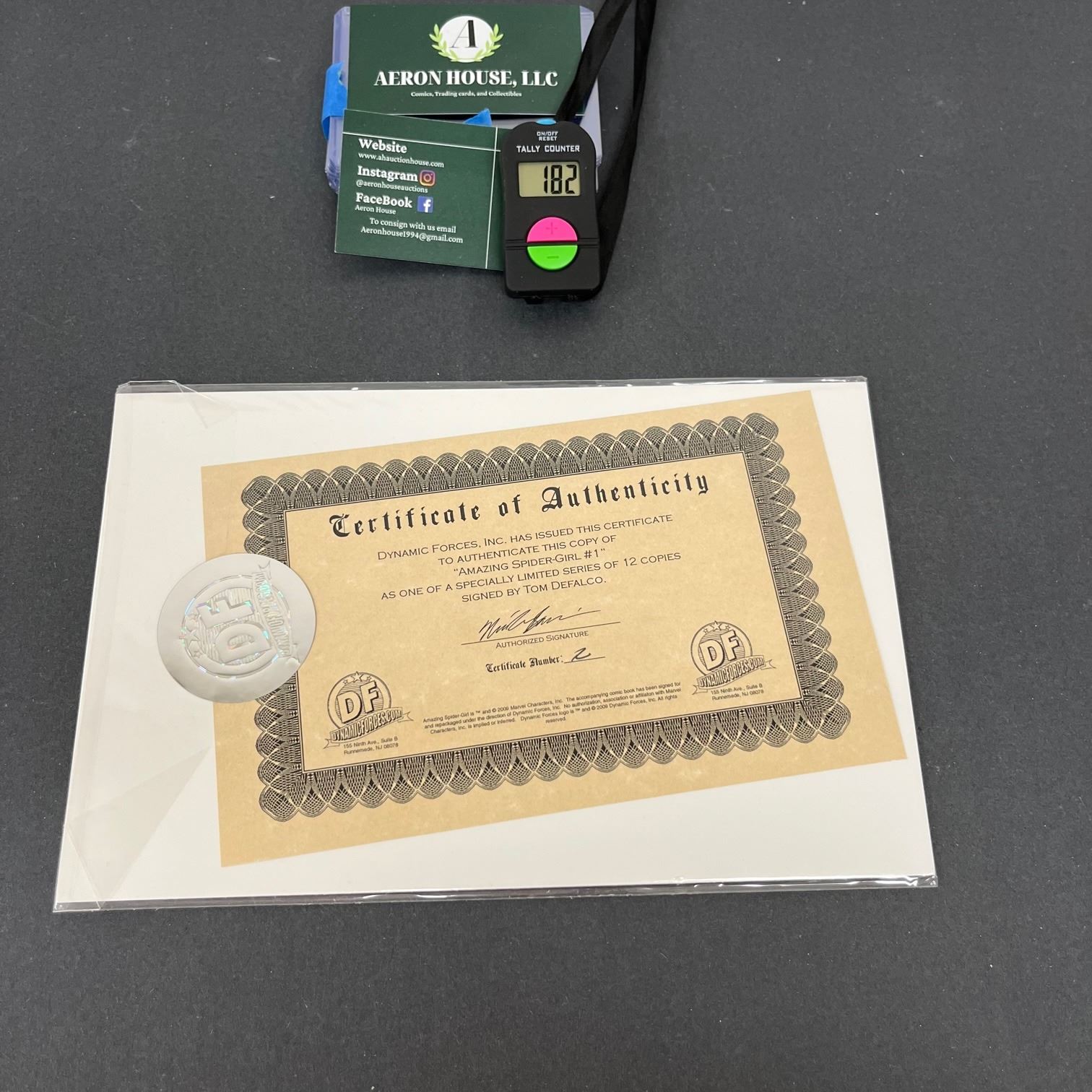 Famed Marvel Comics writer and editor Tom Defalco signed just TWELVE copies of this Dyamic Forces Signed Edition. This one is numbered 2/12 and comes with the Dynamic Forces COA. The Seal is still intact. We are a veteran owned company. Please look at the pictures carefully to determine what you believe the condition of collecitible is. We are currently accepting consignments. Email us a aeronhouse1994@gmail.com or visit our website, www.ahauctionhouse.com. We are currently seeking Star Wars related Collectibles to consign.