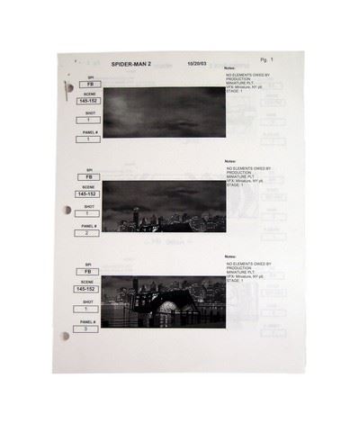 An amazing movie prop from Spiderman 2 is the screen used computer tower from Dr. Octopus' lab and storyboards. Incredibly detailed, with numerous controls and wiring, this piece was made exclusively by the Academy Award winning team of Grant McCune design took the team several months to create for the film (approx. 20" tall) Includes storyboards.