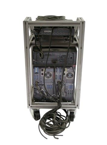 From the Academy Award winning team of Grant McCune Design is this a screen used computer tower rack from Dr. Octopus' lab from Spiderman 2 (2004). This took many months to construct and has incredible detail with miniature computers, and wiring on both the front and back of the rack. (approx. 12" tall)