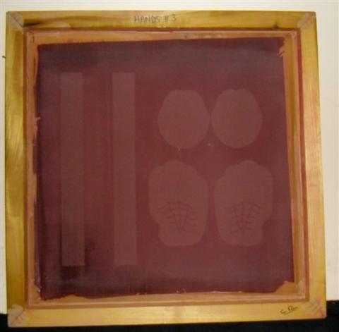 Spider-Man (2002) - Printing Screen used to make the costume gloves for the Spider-Man suit. Signed in bottom corner by Director, Sam Raimi. Silk stretched over wooden frame. 30" x 30". Oversized item. Additional shipping charges required.