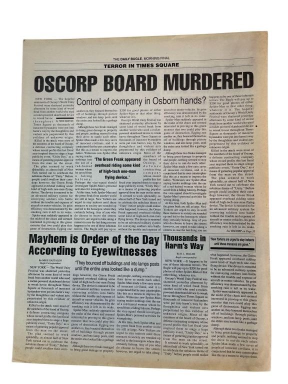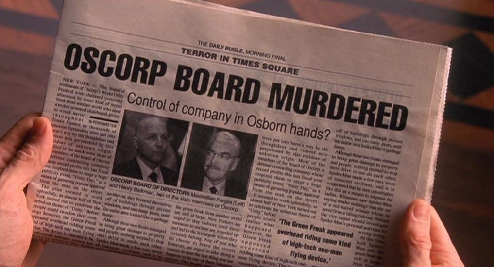 Spider-Man (2002) - Daily Bugle Newspaper "Oscorp Board Murdered".