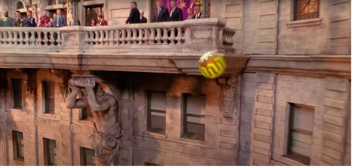 The SFX spherical bomb is made of resin, with a section of the middle hollowed out, and features metal-like elements. The bomb is colored in a metal-like orange with several holes around the outside where LED lights would have been secured. The item shows signs of production use but remains in overall great condition. This lot is accompanied by a Certificate of Authenticity from Studio Auctions.