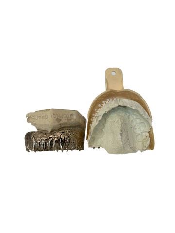 Spider-Man 3 (2007) - Venom (Topher Grace) test chrome fangs and original mouth cast mold (each mold approx. 3"x2"). Topher Grace printed on the bottom of the fangs mold.