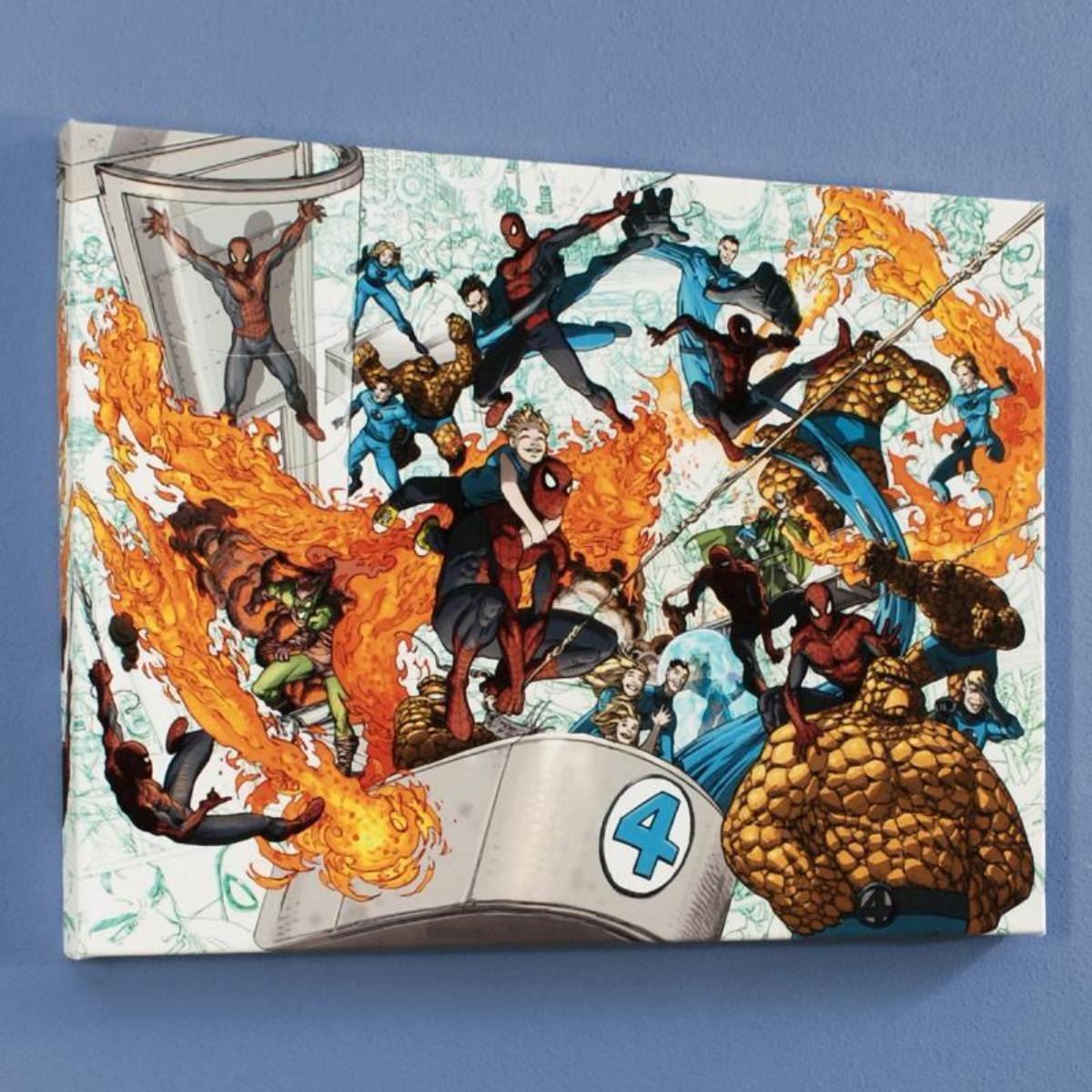 A piece of comic book history, this limited edition, from original art by Mario Alberti, depicts an action-packed scene with Spider-Man and the Fantastic Four. Italian artist Mario Alberti is particularly known for his covered work for both DC and Marvel comics. "Spider-Man/Fantastic Four #4" is a limited edition giclee on canvas by Mario Alberti presented by Marvel Comics! This piece comes gallery wrapped. Includes Certificate of Authenticity! Measures approx. 24" x 18" (image); 1.5" (depth).