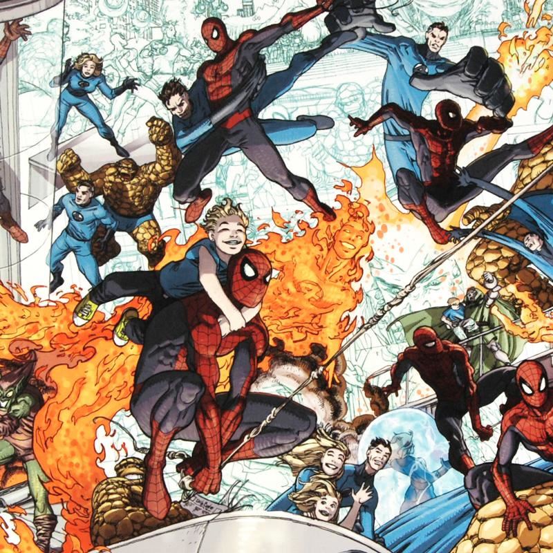 A piece of comic book history, this limited edition, from original art by Mario Alberti, depicts an action-packed scene with Spider-Man and the Fantastic Four. Italian artist Mario Alberti is particularly known for his covered work for both DC and Marvel comics. "Iron Age: Alpha #1" is a limited edition giclee on canvas by Mario Alberti presented by Marvel Comics, hand signed by the Great Stan Lee (1922-2018) and numbered out of only 4! This piece has been custom framed and ready to hang. Includes Certificate of Authenticity! Measure approx. 36" x 29" (with frame); 29" x 22" (image).
