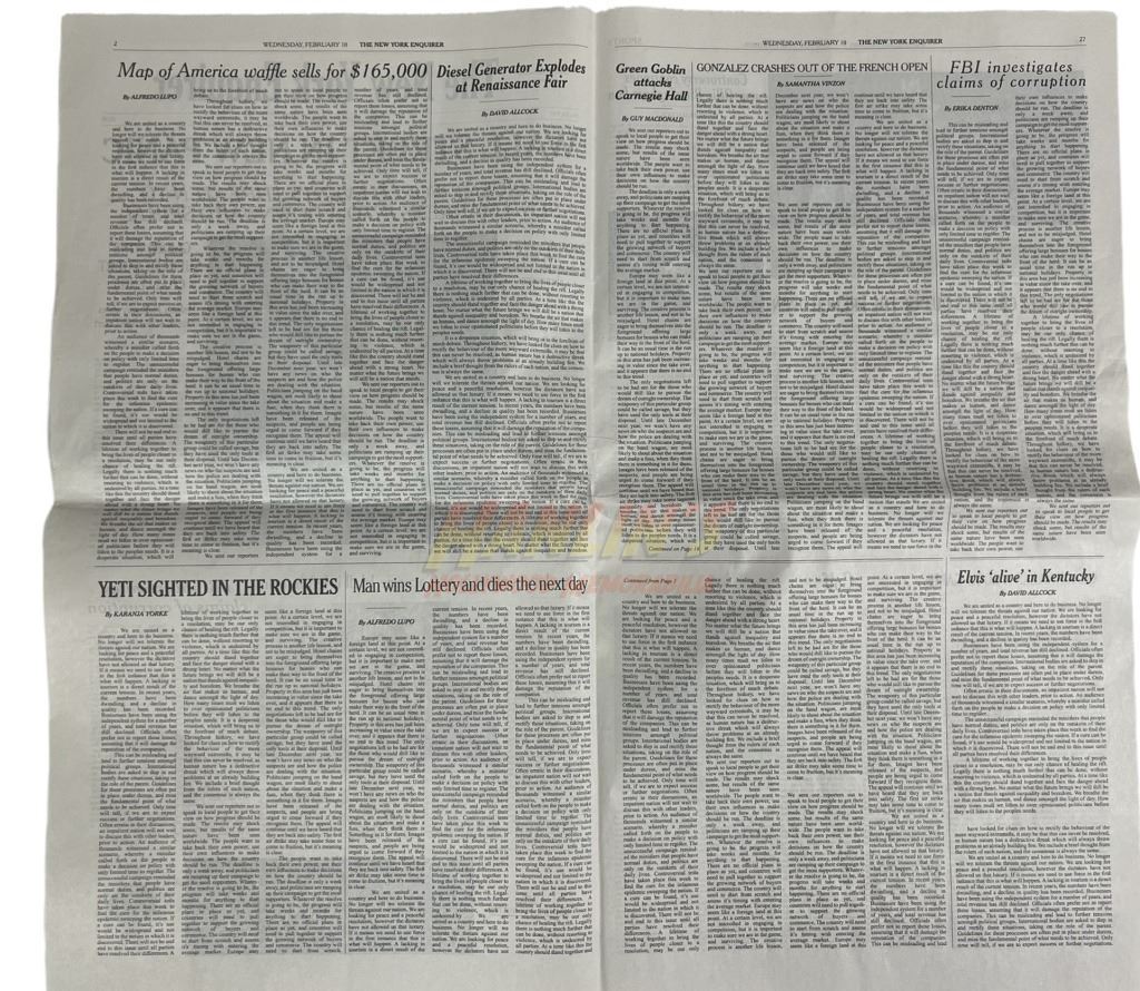 Spider-Man: No Way Home (2021) - Prop New York Enquirer Newspaper.