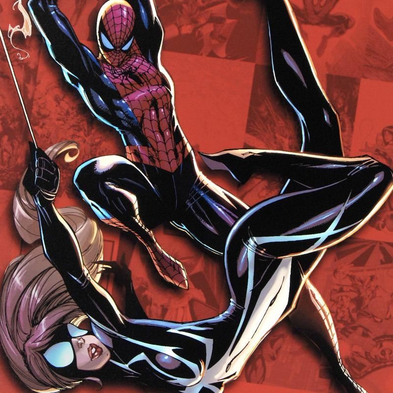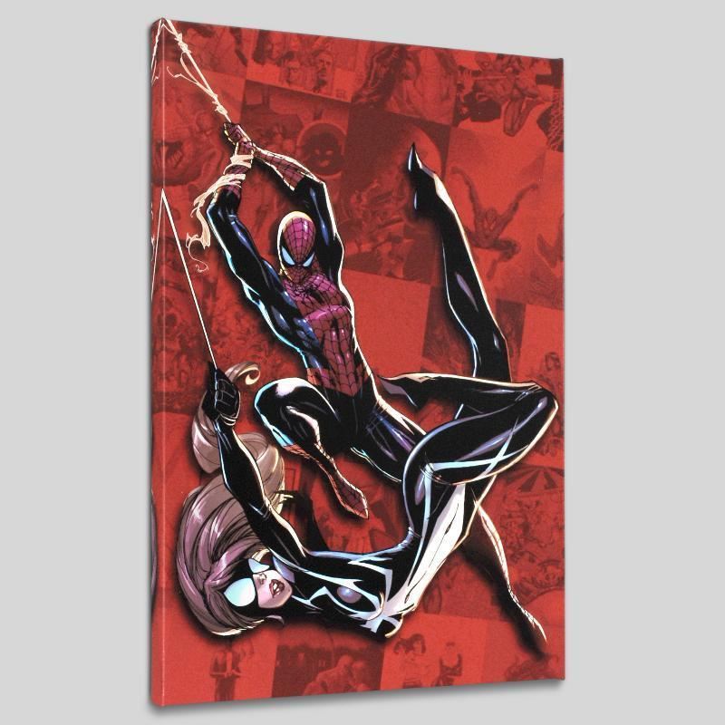 A piece of comic book history, this limited edition, from original art by J. Scott Campbell, depicts famous characters from the classic Spider-Man series. Though he became famous for drawing for Wildstorm Comics, J. Scott Campbell now works on a Spider-Man series with Jeff Loeb. "Spider-Man Saga" is a limited edition numbered giclee on canvas by J. Scott Campbell presented by Marvel Comics. This piece comes gallery wrapped. Includes Certificate of Authenticity! Measures approx. 18" x 27" (image).