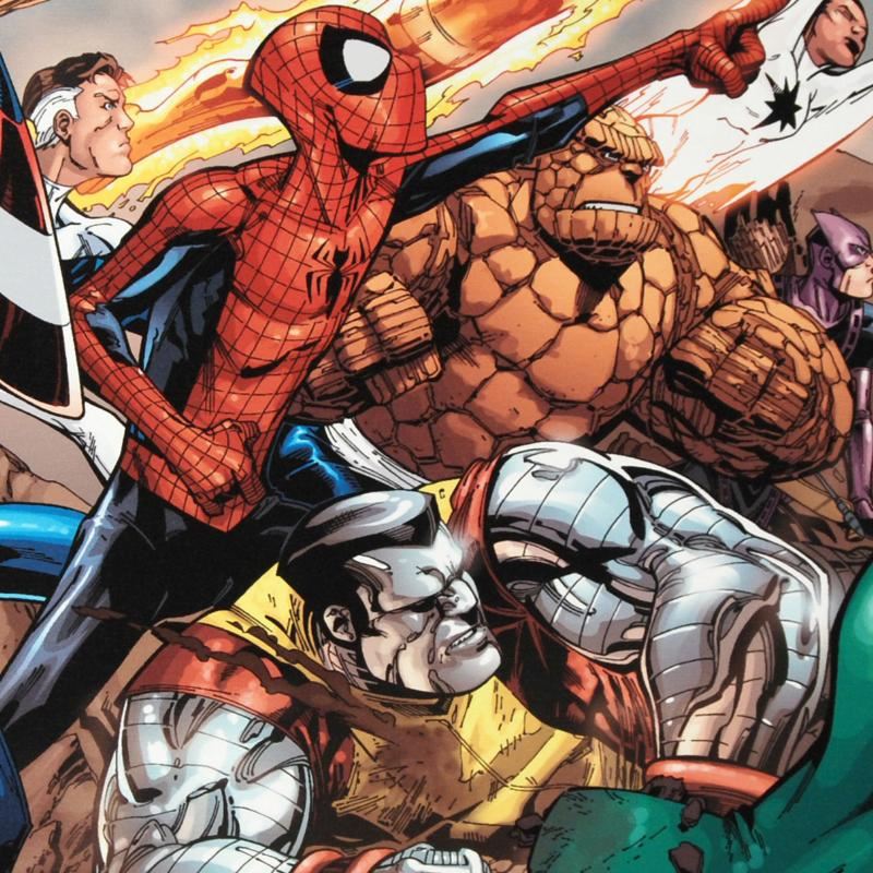 A piece of comic book history, this limited edition, from original art by Patrick Scherberger, depicts Spider-Man, Colossus, Thing, Iron Man and Human Torch. Patrick Scherberger is an American comic book penciller, known for his work on the book Marvel Adventures: Spider-Man. Scherberger's career began when he entered and won an internet competition called Comic Book Idol in 2004. During the competition he was contacted by Joe Quesada to do a formal try-out for Marvel Comics and, as a result of this, was soon chosen to pencil Marvel Adventures: Spider-Man. "Spider-Man & The Secret Wars #3" is a limited edition numbered giclee on canvas by Patrick Scherberger presented by Marvel Comics. This piece comes gallery wrapped. Includes Certificate of Authenticity. Measure approx. 18" x 27" (image); approx. 1.5" (depth).