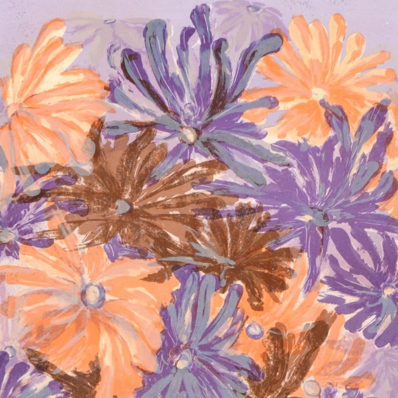 "Spider Mums" is a limited edition lithograph on paper by Hari Hockey, numbered and hand signed by the artist! Measures approx. 22" x 29" (with border); 19" x 26" (image).