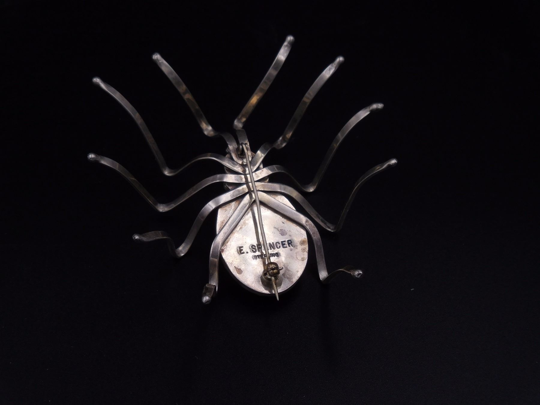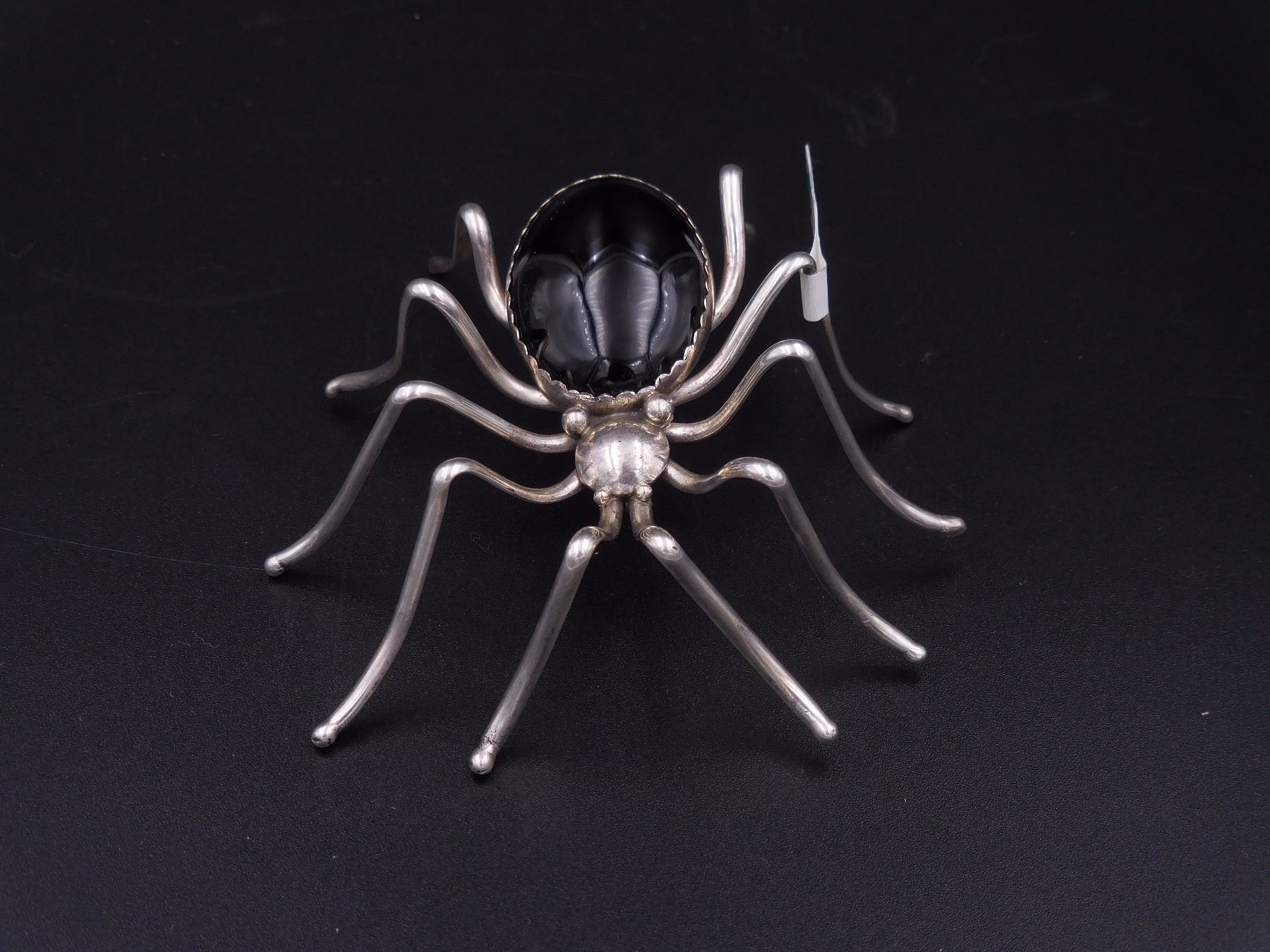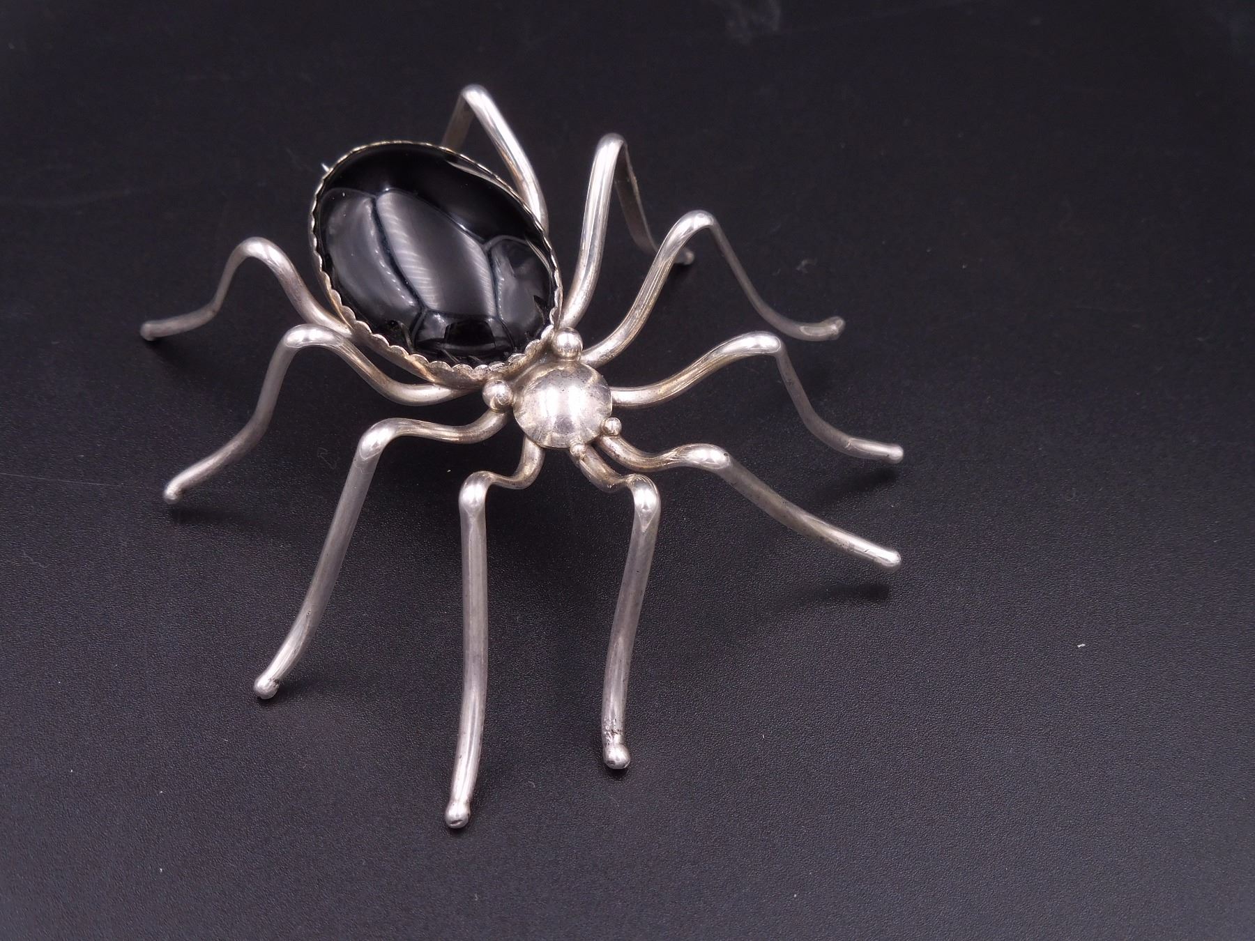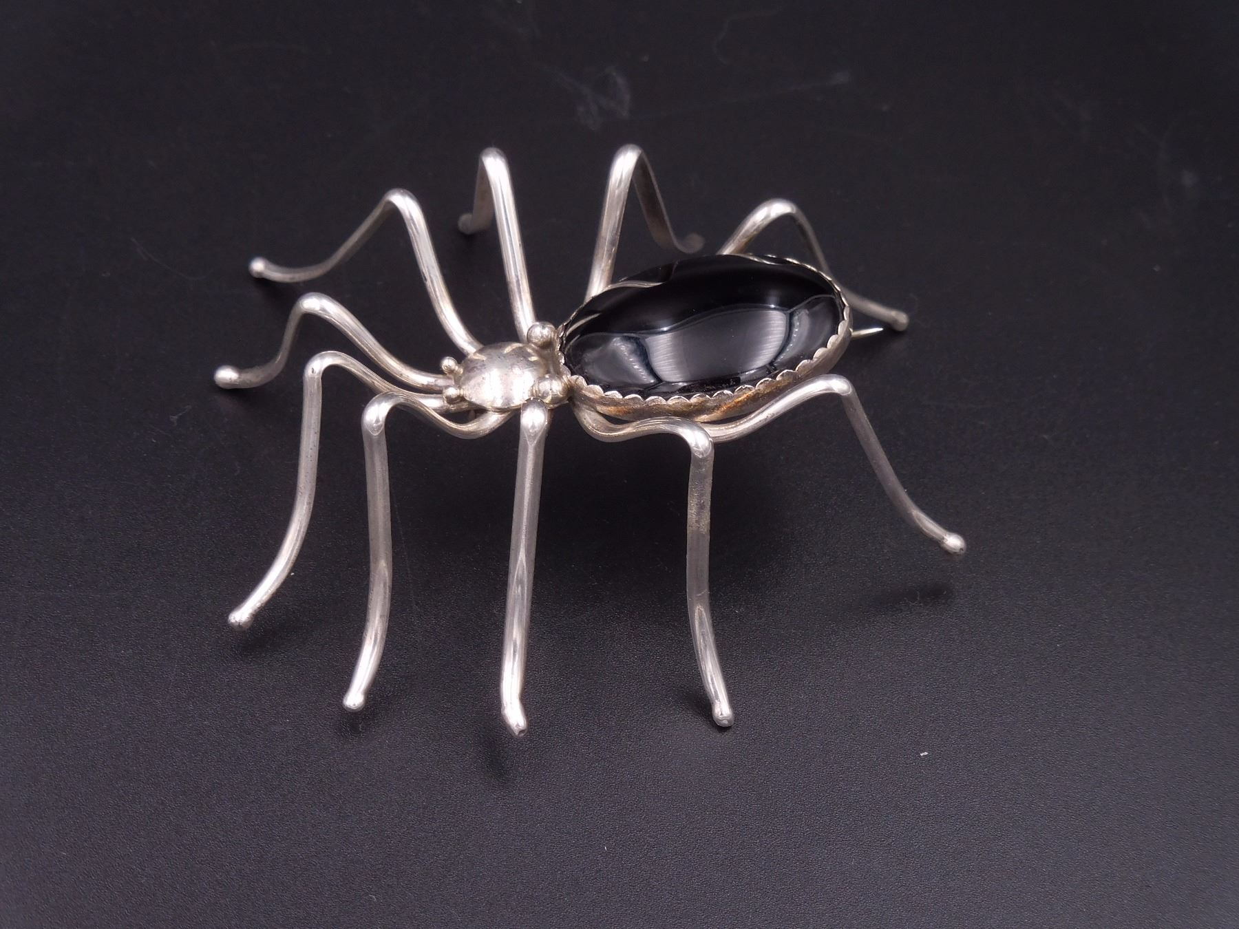 Spider Pin, Silver and Onyx, handmade by E.Spencer