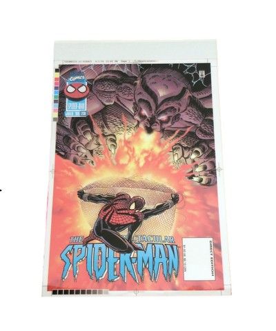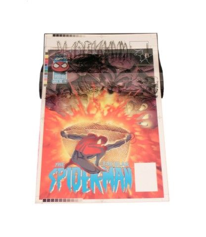 Spider-man Marvel Comic Book Cover 4-Color Proofs #236 - From "Spider-Man" #236, (July 1996). this is the original 4-Color Marvel Comic proofs for the cover printing of the edition. These proofs are usually destroyed shortly after printing. However a few were saved, and are extremely valuable. Vibrant and beautiful, it features four multi-layered acetates. Very rare and very desirable production art. One-of-a-kind. Approx 7.5x12.5".
