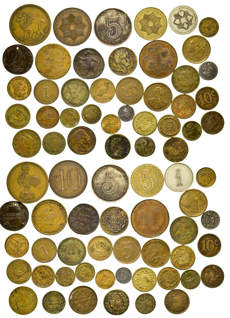 Lot of 37 gaming counters including rare pieces, mostly $1-5 patterns. An entire collection worthy of inspection. HKA#62427