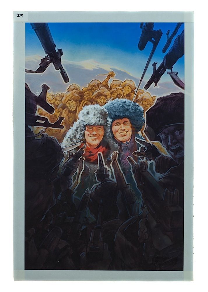 (Warner Bros., 1985) Original poster concept art by Michael Hobson. Acrylic and prismacolor pencil with photostat elements on illustration board, measures 14" x 21". Very detailed painting for one of several poster concepts for the film. It is in great condition, and signed on the left under a gun barrel "M. Hobson".