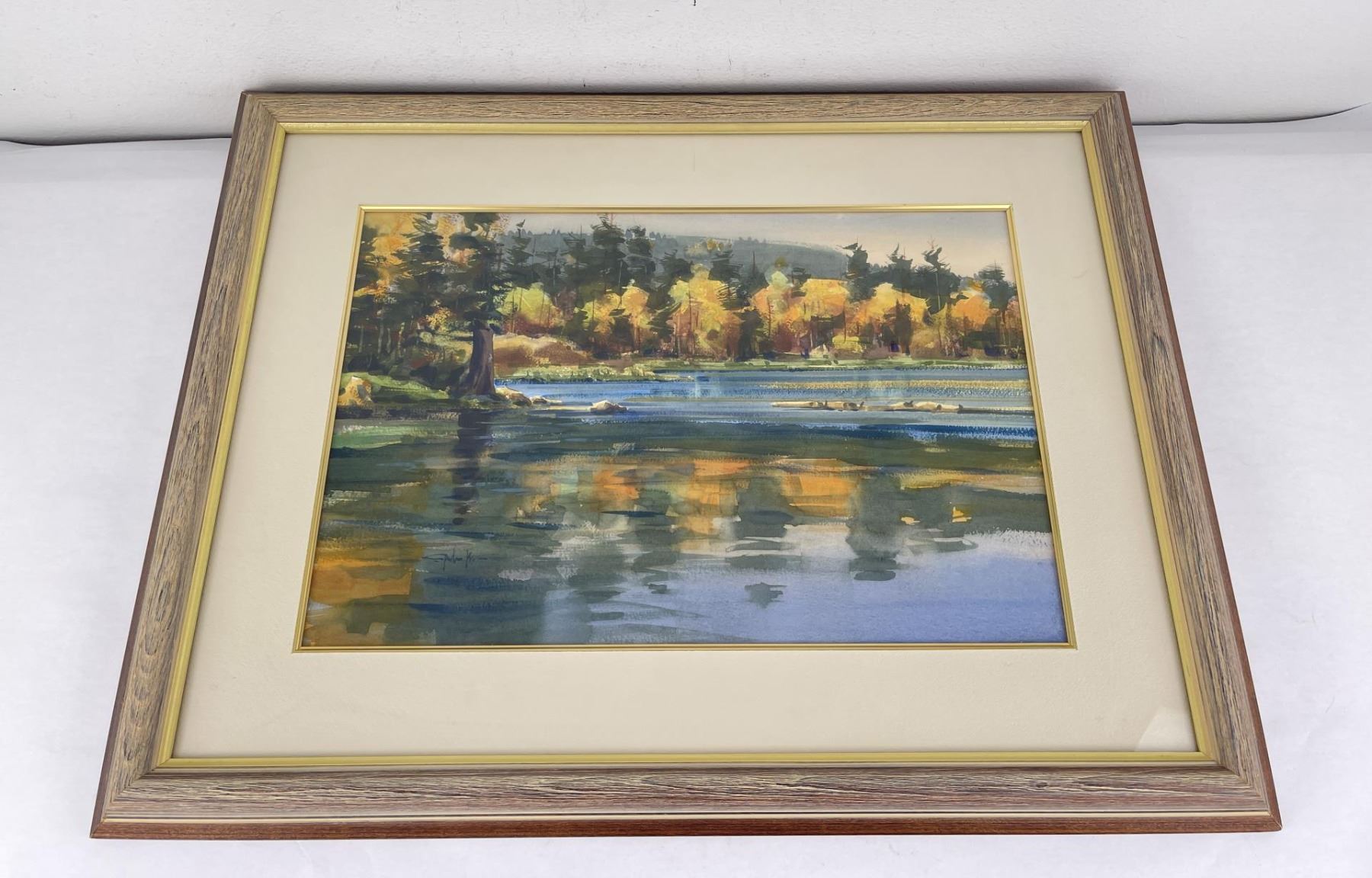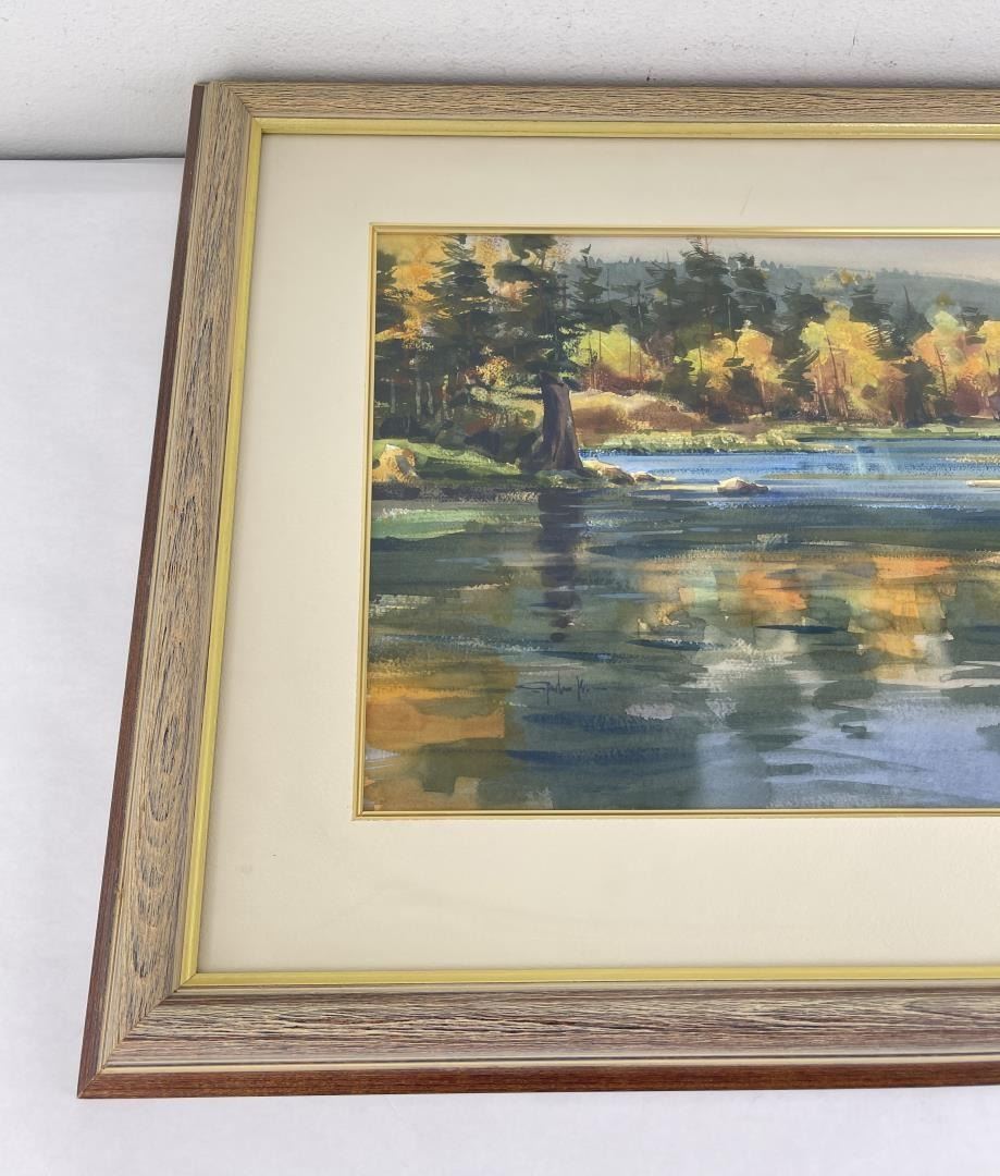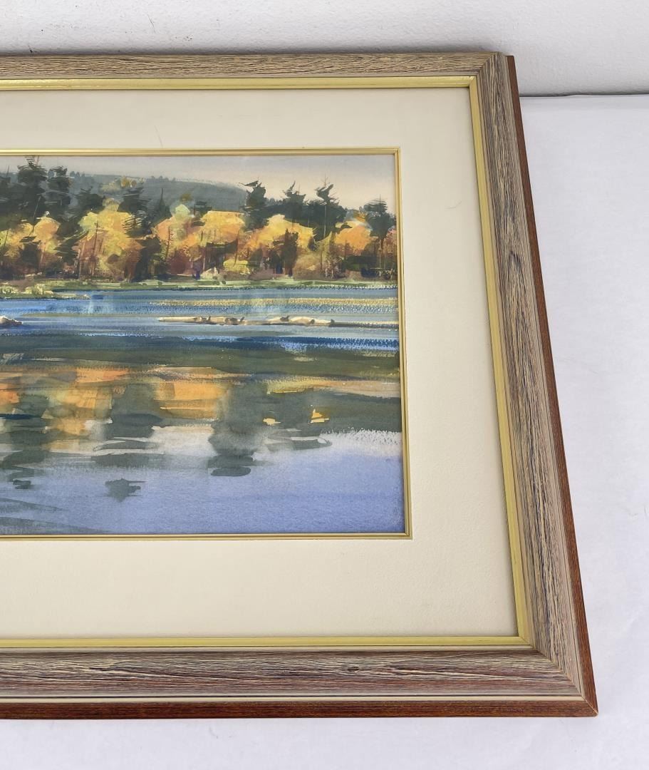 Title is Mirror Aspen Lake. 24 1/2" by 31 5/8" framed. Spike Ress (Born 1948) is active/lives in Utah. Spike Ress is known for Southwestern landscape. A resident of Parowan, Utah, he travels to the many national parks within a day's drive from his studio. He was born on Long Island, New York, but spent his childhood in Roswell, New Mexico where he had an apprenticeship with a sign company. Then he became an art director for a Las Vegas, Nevada firm. But tiring of illustration, he turned to fine art, taking much of his early inspiration from Taos, New Mexico, where he lived for several years until 1987 when he moved to Utah.