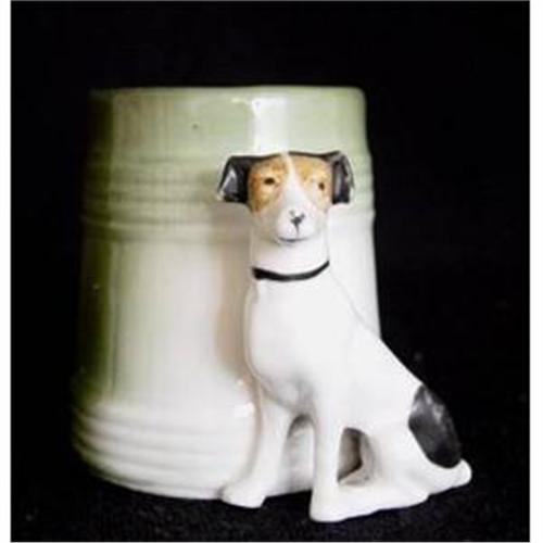 Spill Vase With Dog Green Glaved Pot With Black And White Dog Sitting By The Pot (Damaged Taken Off Sale And Discarded)