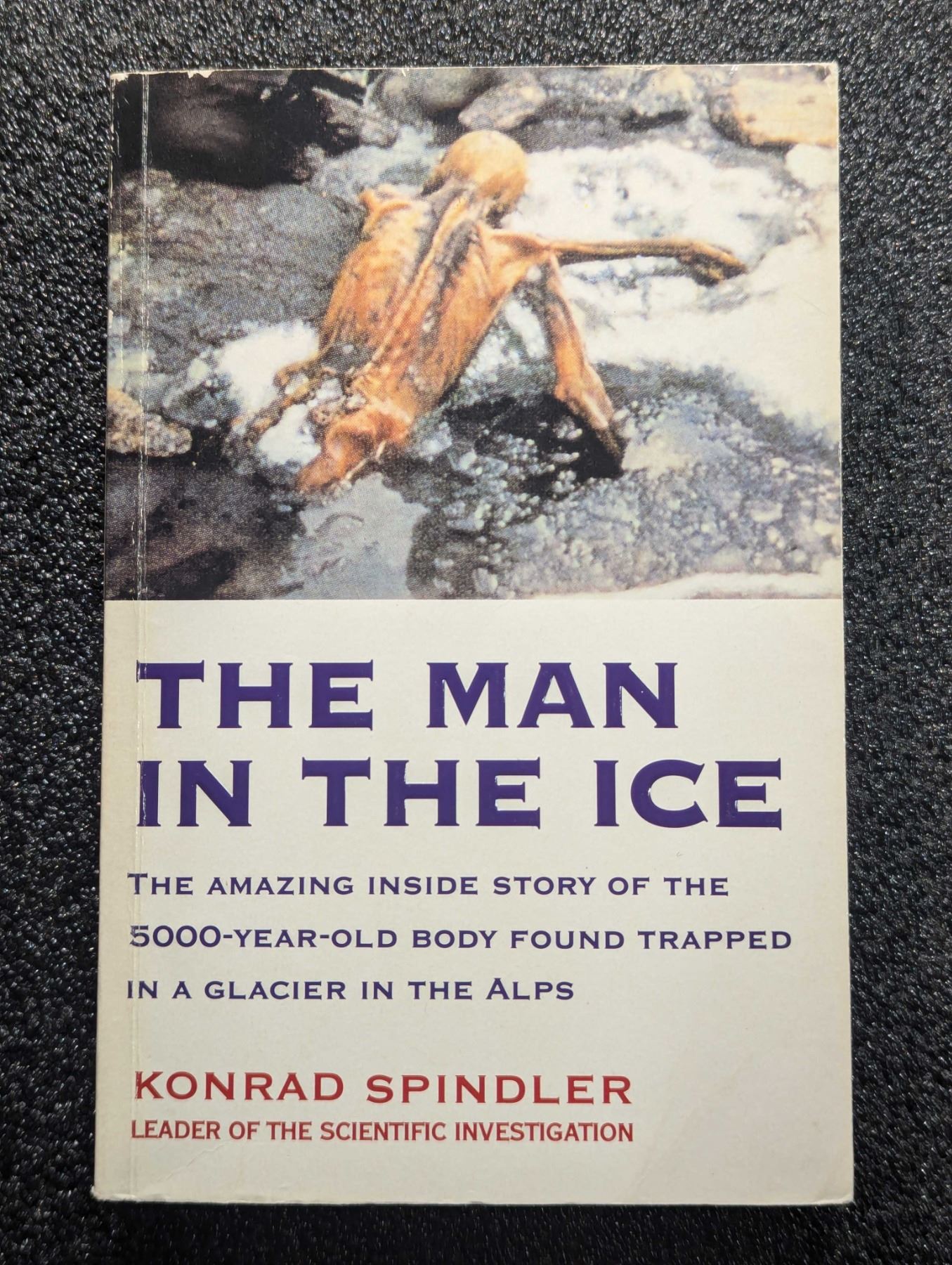 Spindler, Konrad. THE MAN IN THE ICE - THE AMAZING INSIDE STORY OF THE 5000-YEAR-OLD BODY FOUND TRAPPED IN A GLACIER IN THE ALPS. Phoenix Paperbacks, London. 1995. 12mo. xii, (2), 305, (1) pages. original pictorial card covers. Appendix. Glossary. Bibliography. Maps. Plates. B&w photos and illustrations throughout. English text. The David Baker Library. Very Good. This book recounts the story of the 5000-year-old body found trapped in a glacier in the Alps and the forensic investigations and conclusions that followed. Lot weight: 0 lbs 11oz. Subject(s): Archaeological Investigation.