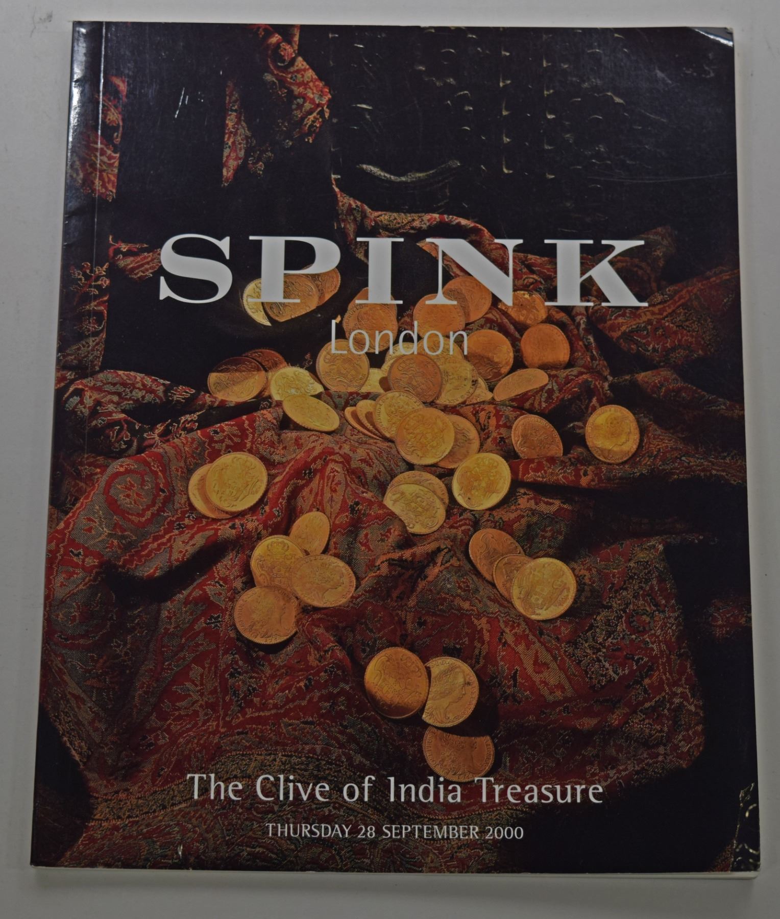 Spink London. THE CLIVE OF INDIA TREASURE. September 28, 2000. 4to, 60 pages; Softcover; The gold treasure of Captain Robert Clive (of India fame) was known to have been lost in the wreck of the English East India Company ship, "Dodington", which sank in 1755 off the coast of South Africa…but what happened to the gold after that is a mystery. This auction catalog contains 431 lots of gold pecas and one lot with an 800 reis coin. These were salvaged from an unidentified wreck in the Indian Ocean, but are believed by some to be Clive's gold by virtue of the fact that the weight and composition of the find match almost exactly what was listed on the manifest of the "Dodington" (653 oz. and 6 dwt.). Some have speculated that pirates found where the survivors of the “Dodington” buried the coins, and sailed away with them…only to have their ship sink in the Indian Ocean (where the coins were actually recovered). Subject: History - Sunken Treasure