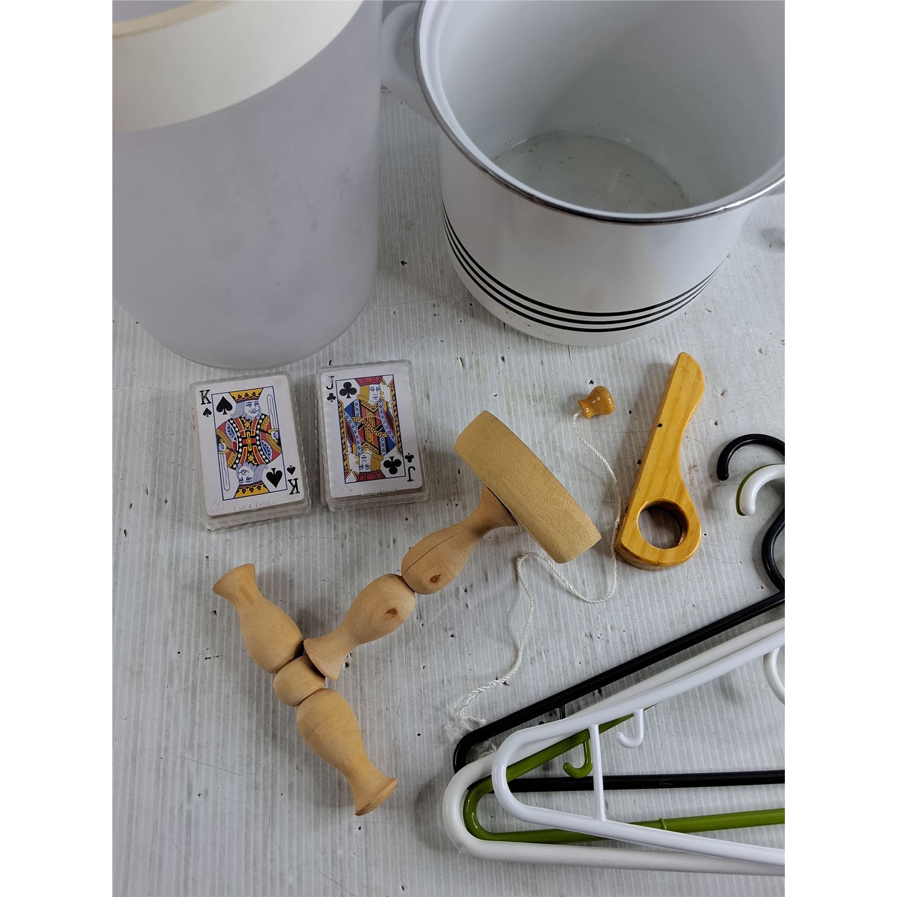 Spinning Top, Enamel Cooking Pot, Playing Cards, Hangers, Coat Rack, Trash Bin, Misc