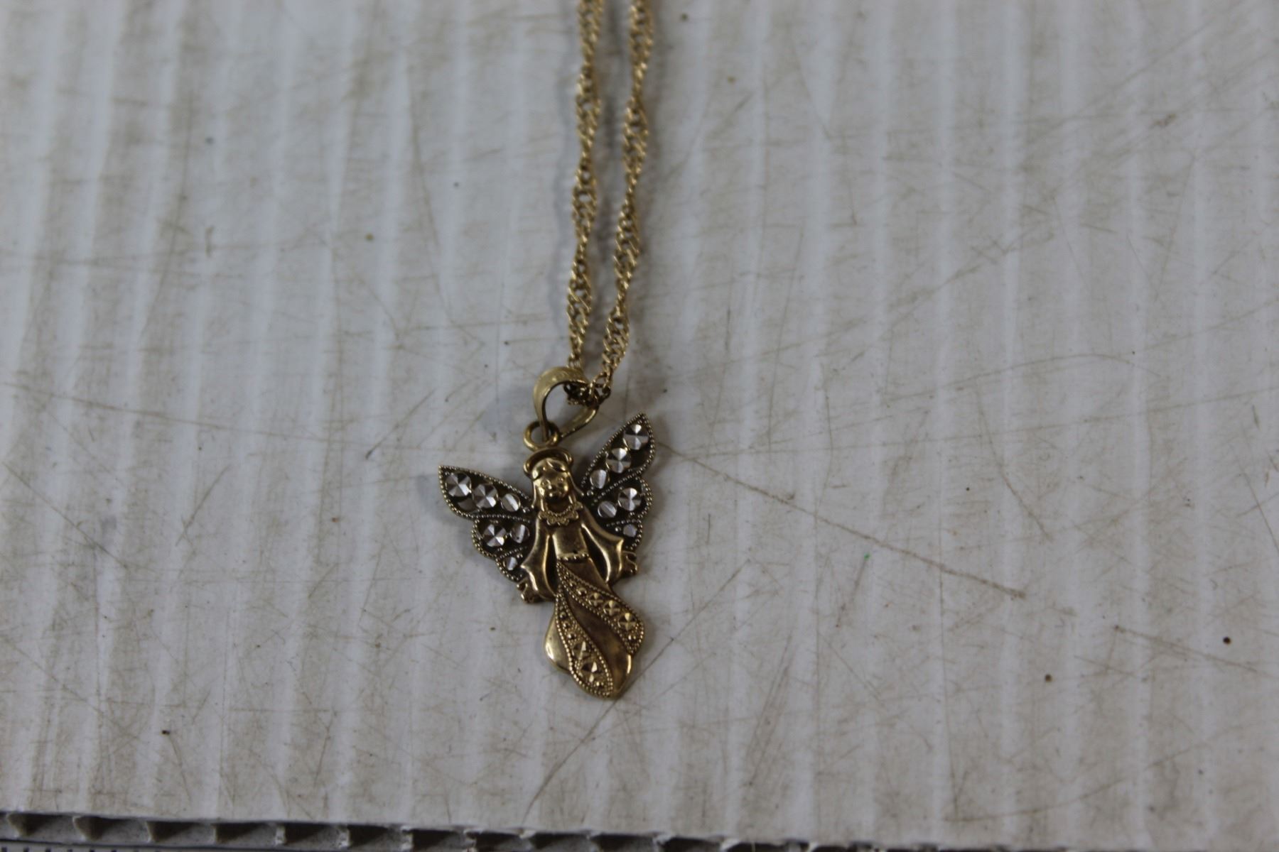 ^Spiraled Gold Chain with Angel Pendant