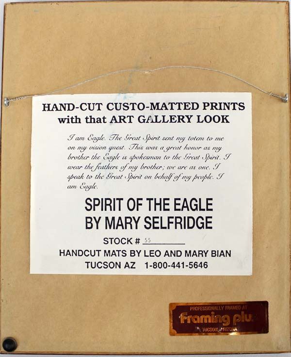 Spirit of the Eagle Framed Print by Mary Selfridge, visual measures 4" x 5", overall framed measurement of 9" x 11"