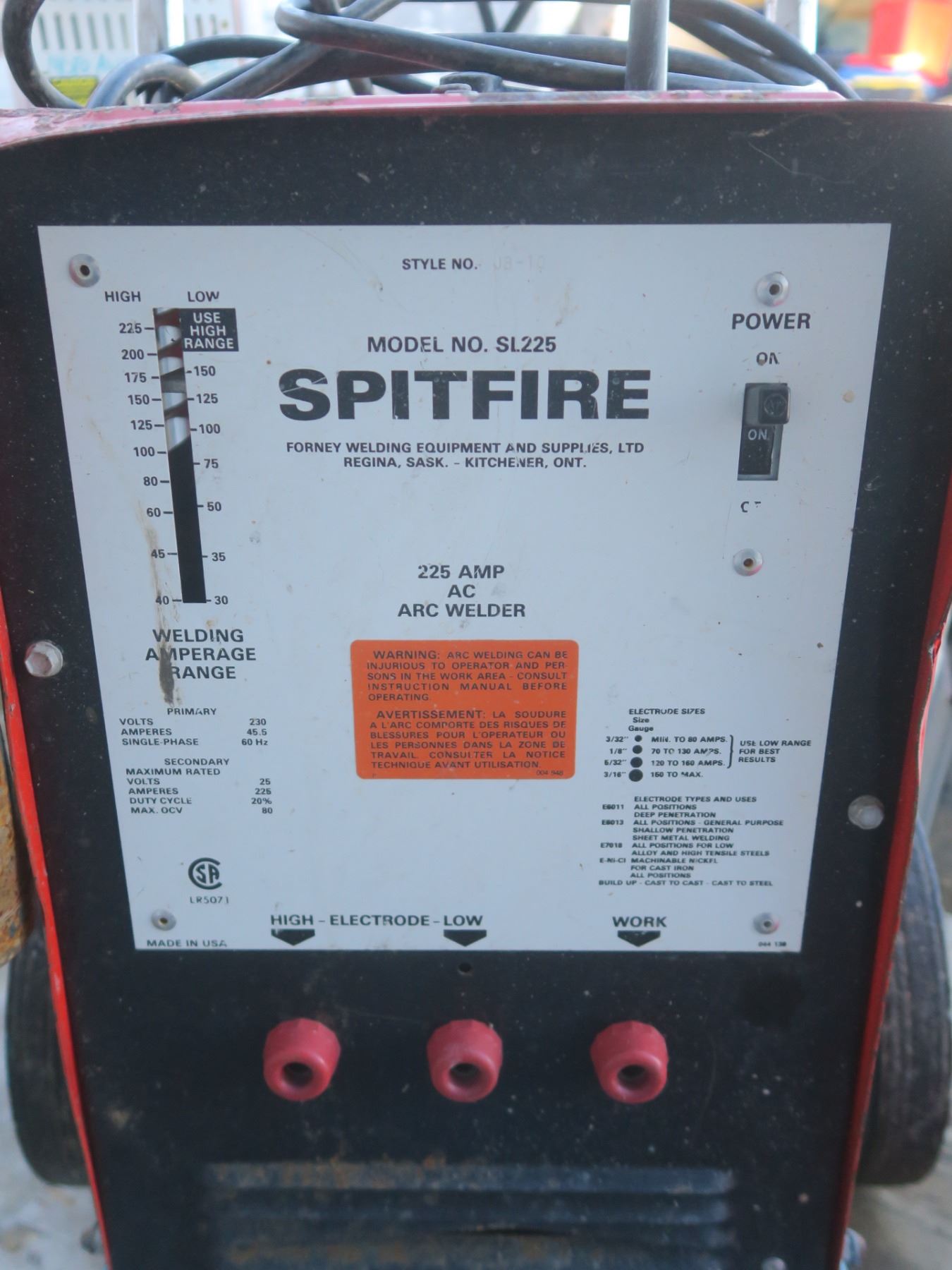 Spitfire Model No. SL225 arc welder