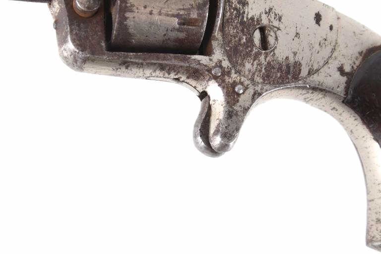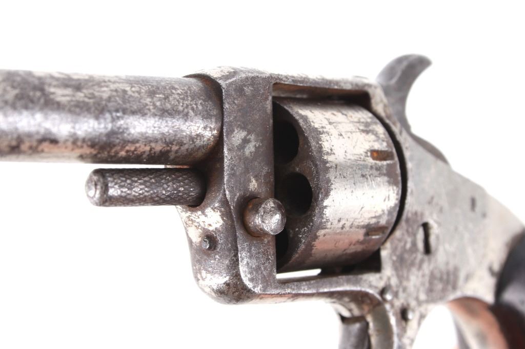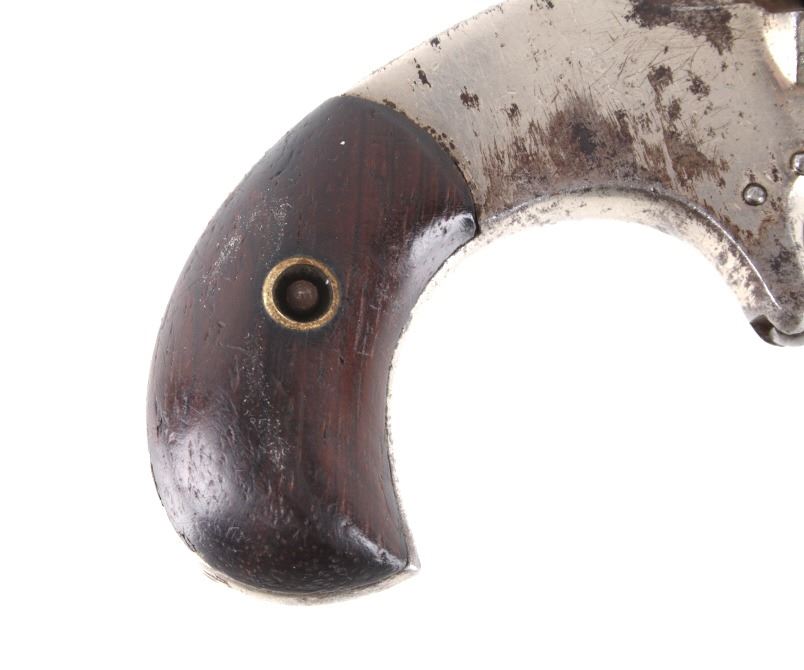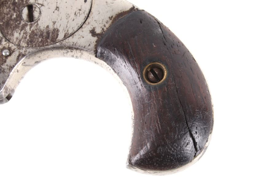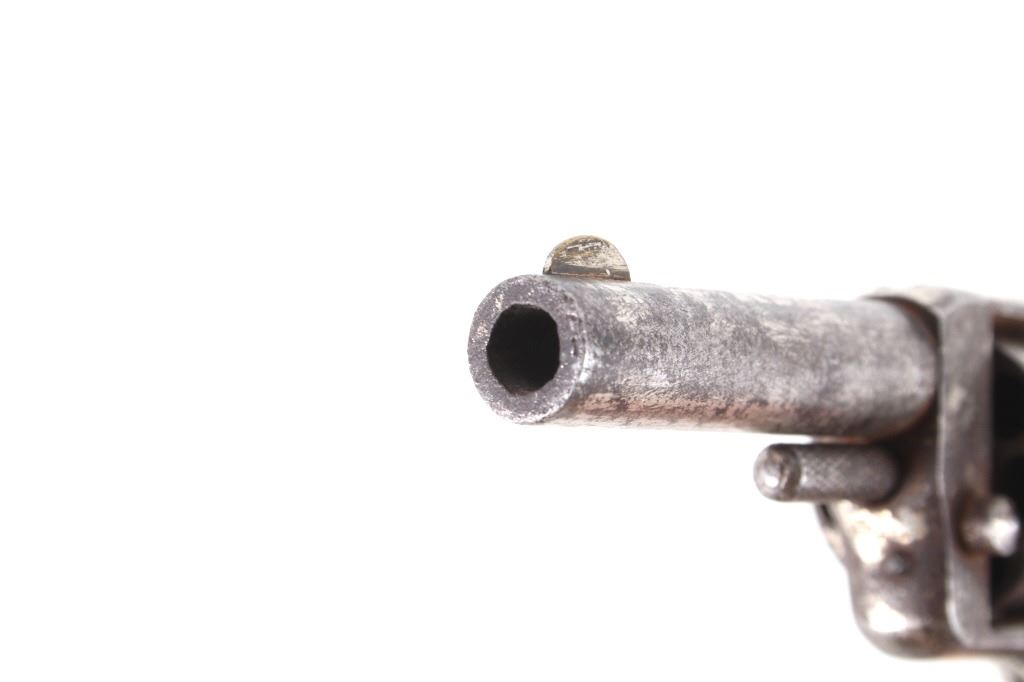 Featured in this lot we have a Spitfire spur trigger pocket revolver chambered in .22 caliber. This revolver originates from the late 1800's. This spur trigger revolver has a seven shot cylinder chambered in .22 RF. The pistol displays a 2 1/4" long round barrel, walnut birdhead grips, and nickel finish. The revolver is faintly marked across the top of the barrel reading "SPITFIRE". The revolvers single action shows functionality with some light play in the cylinder. The revolver shows fair condition with some rusting and wear across the exterior. The pistol weighs 6oz. Serial Number: 3539. This firearm qualifies as an Antique, and does not require FFL Transfer or NICS Background Check.