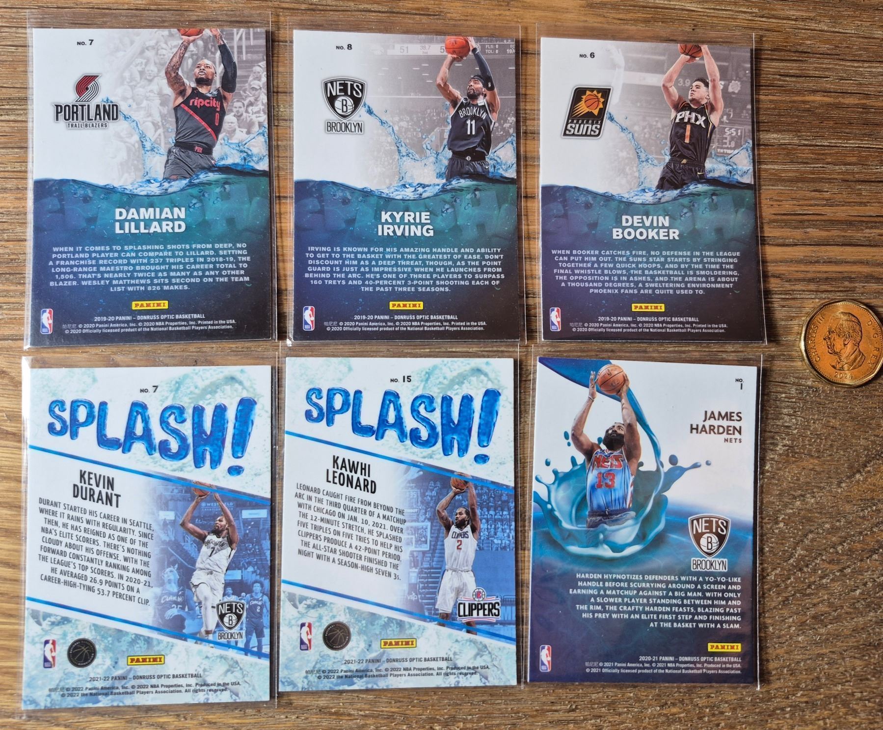 Damian Lillard, Kyrie Irving, Devin Booker, Kevin Durant, Kawhi Leonard, James Harden. Wave-themed holo design.