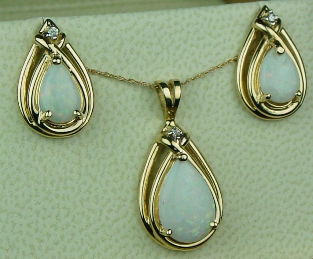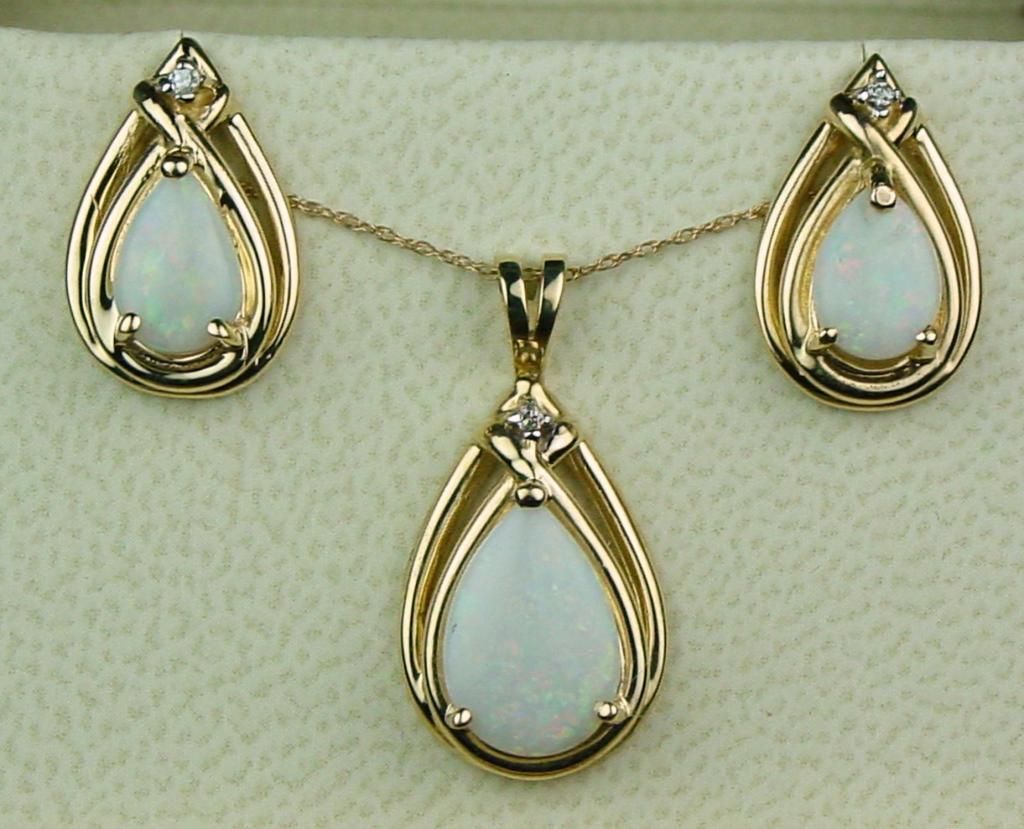 Splendid 10 karat yellow gold ladies earring/pendant ensemble set with three matching Australian opals and diamonds weighing approx. 4.00 carats. Retail $1,000-$1,500 Estimate $600-$900 Nice