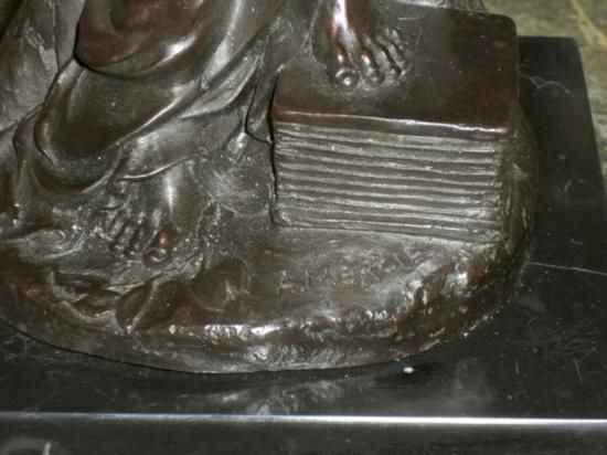 Athena Greek Goddess Bronze Sculpture, After Mercie 24inH x 11inW x 9inD 28 lbs. The Lost Wax Cast method is the most precise metal casting technique in existence, ensuring exquisite detail of the original host model which is usually sculpted in clay or wax. This Lost Wax casting method is an extremely labor intensive and expensive process, but the end results produce a Heirloom Quality Masterpiece!