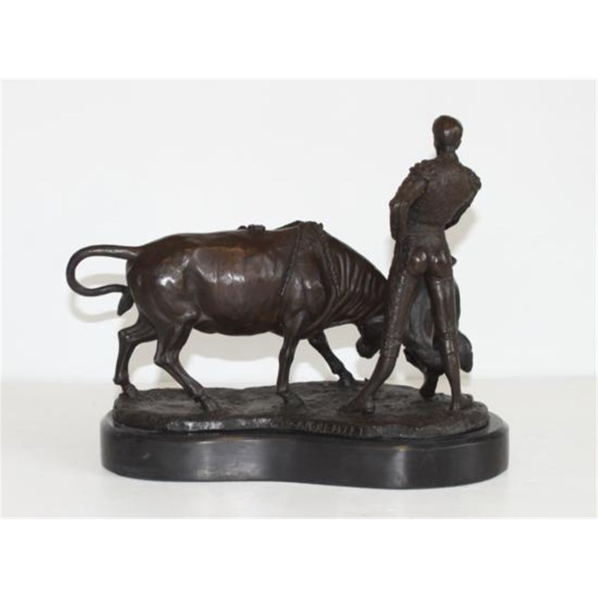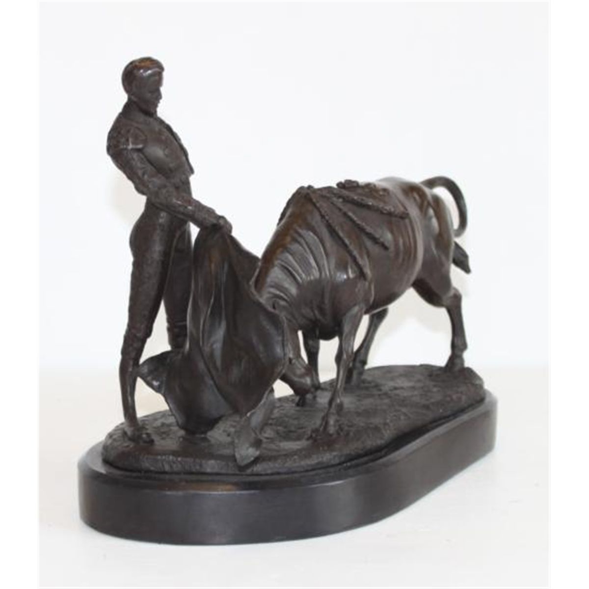 Matador Bronze Sculpture, After Fremiet, 10"H x 11"W x 6"D 16 lbs. This bronze sculpture was produced using the "Lost Wax" casting method. The"Lost Wax" Cast method is the most precise metal casting technique in existence, ensuring exquisite detail of the original host model which is usually sculpted in clay or wax. This "Lost Wax" casting method is an extremely labor intensive and expensive process, but the end results produce a Heirloom Quality Masterpiece!