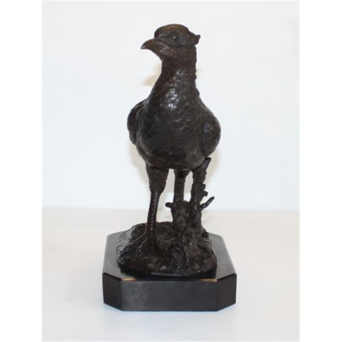 Pheasant Bird, Bronze Sculpture, After Debvt, 13"H x 20"L x 6"D22 lbs This bronze sculpture was produced using the "Lost Wax" casting method. The"Lost Wax" Cast method is the most precise metal casting technique in existence, ensuring exquisite detail of the original host model which is usually sculpted in clay or wax. This "Lost Wax" casting method is an extremely labor intensive and expensive process, but the end results produce a Heirloom Quality Masterpiece!