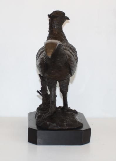 Pheasant Bird, Bronze Sculpture, After Debvt, 13"H x 20"L x 6"D22 lbs This bronze sculpture was produced using the "Lost Wax" casting method. The"Lost Wax" Cast method is the most precise metal casting technique in existence, ensuring exquisite detail of the original host model which is usually sculpted in clay or wax. This "Lost Wax" casting method is an extremely labor intensive and expensive process, but the end results produce a Heirloom Quality Masterpiece!