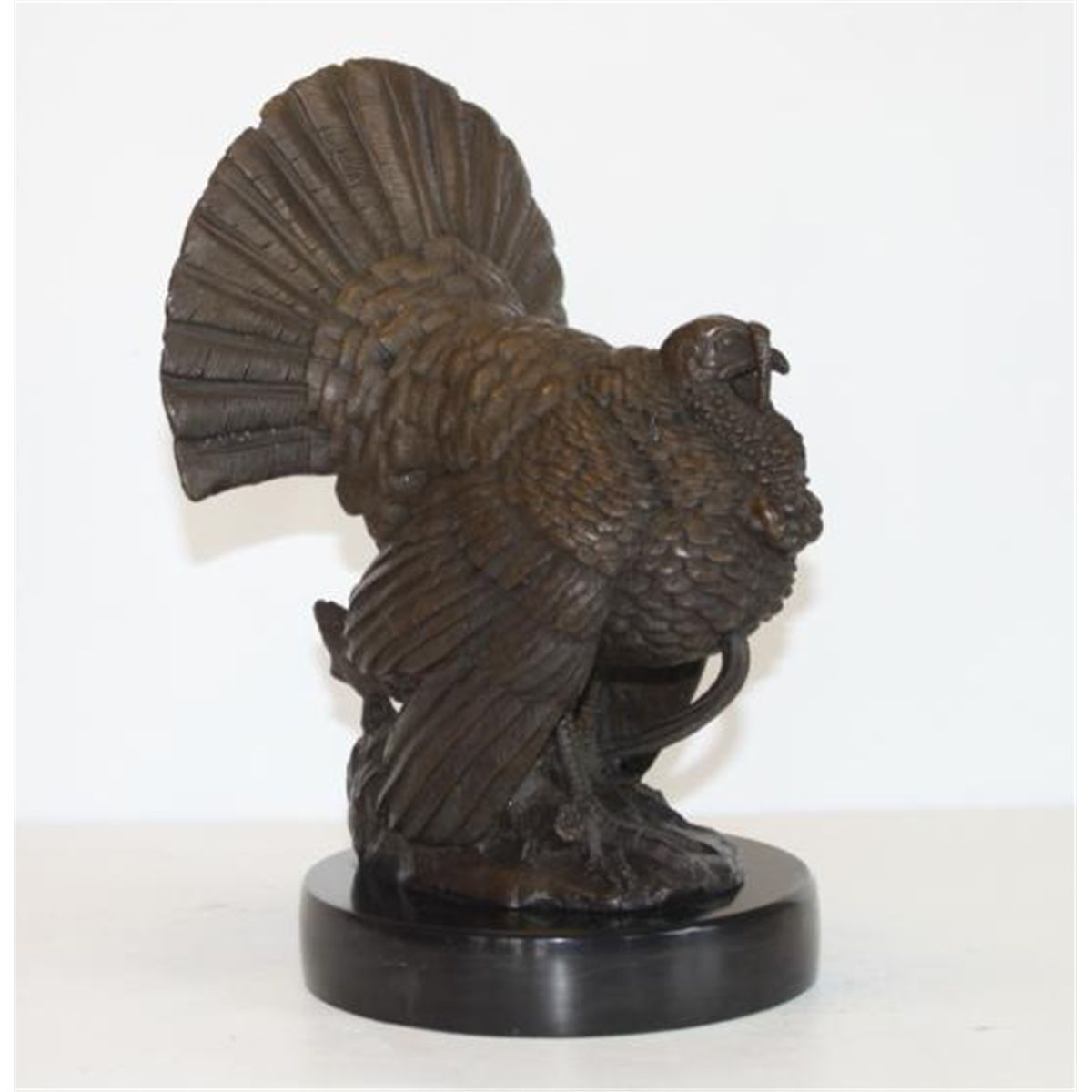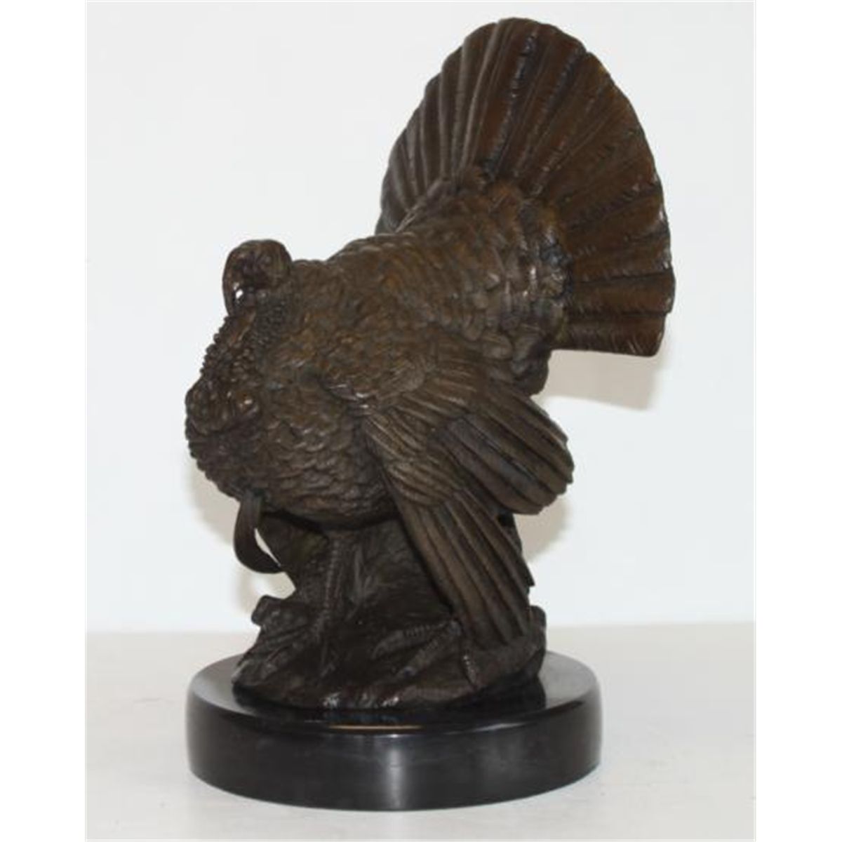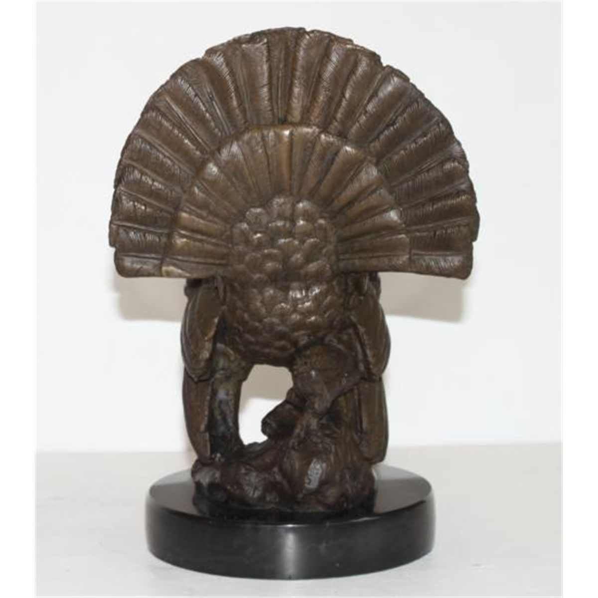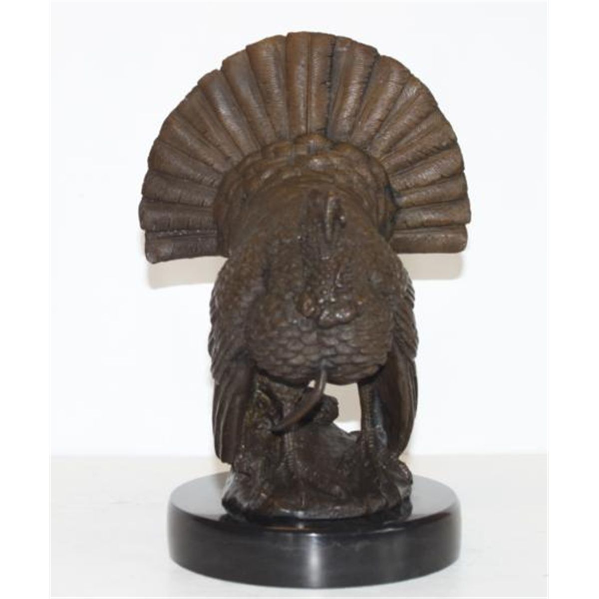 Wild Turkey Bronze Sculpture, After Lobo, 12"H x 7"W x 8"D16 lbs. This bronze sculpture was produced using the "Lost Wax" casting method. The"Lost Wax" Cast method is the most precise metal casting technique in existence, ensuring exquisite detail of the original host model which is usually sculpted in clay or wax. This "Lost Wax" casting method is an extremely labor intensive and expensive process, but the end results produce a Heirloom Quality Masterpiece!