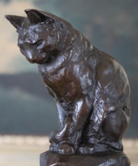 Splendid Cat, Bronze Sculpture, After Barye, 8 1/4inH x 2 3/4inW x 2 3/4in D 8lbs. This bronze sculpture was produced using the Lost Wax casting method. The Lost Wax Cast method is the most precise metal casting technique in existence, ensuring exquisite detail of the original host model which is usually sculpted in clay or wax. This Lost Wax casting method is an extremely labor intensive and expensive process, but the end results produce a Heirloom Quality Masterpiece!