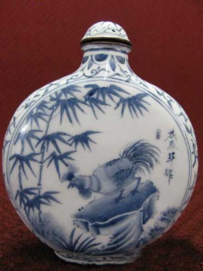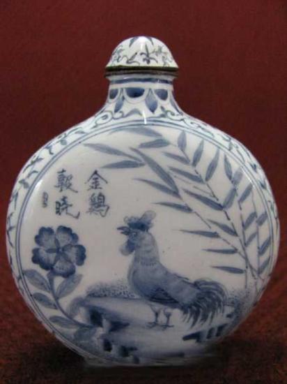 Copper Enamel Snuff Bottle - Chook Height: 3.0in Width: 2.5in