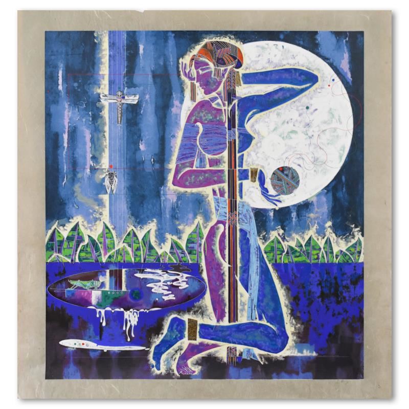 "Splendor" is a limited edition serigraph on rice paper by Lu Hong, numbered and hand signed by the artist. Includes Letter of Authenticity. Measures approx. 38" x 40" (with border), 32" x 36" (image).