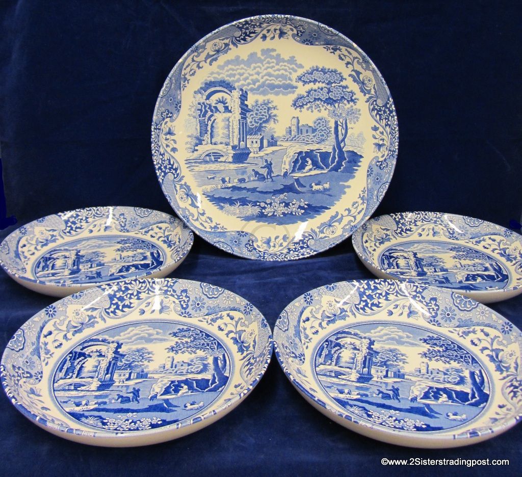 5 piece Spode Blue Italian design pasta set: includes 1 -12" bowl 1.5" deep and 4 - 8.75" bowls 1.5" deep. This Italian design is a C1816 pattern and as always made with Spode's high quality of standards. All bowls are Dishwasher Safe and Microwave safe. Great addition to your collection or give as a gift. New in Box ready for shipped. Don't miss out on a great deal.