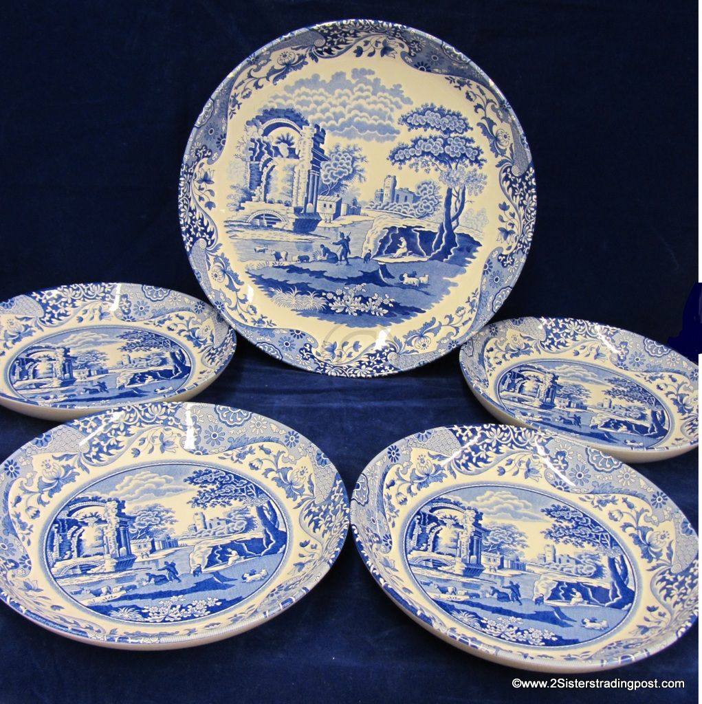 5 piece Spode Blue Italian design pasta set: includes 1 -12" bowl 1.5" deep and 4 - 8.75" bowls 1.5" deep. This Italian design is a C1816 pattern and as always made with Spode's high quality of standards. All bowls are Dishwasher Safe and