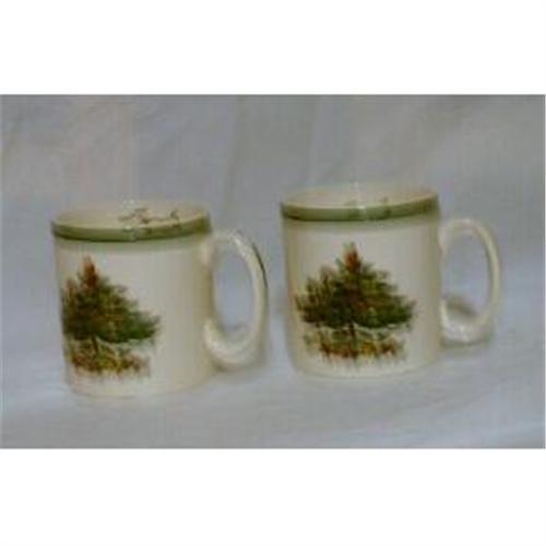 Spode Mugs Pattern: Christmas Tree with Green Trim. Set of two excellent condition with no chips cracks or crazing.