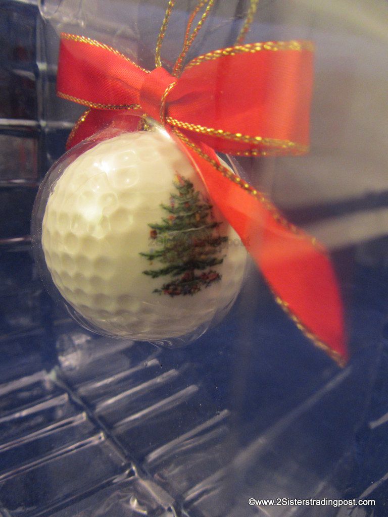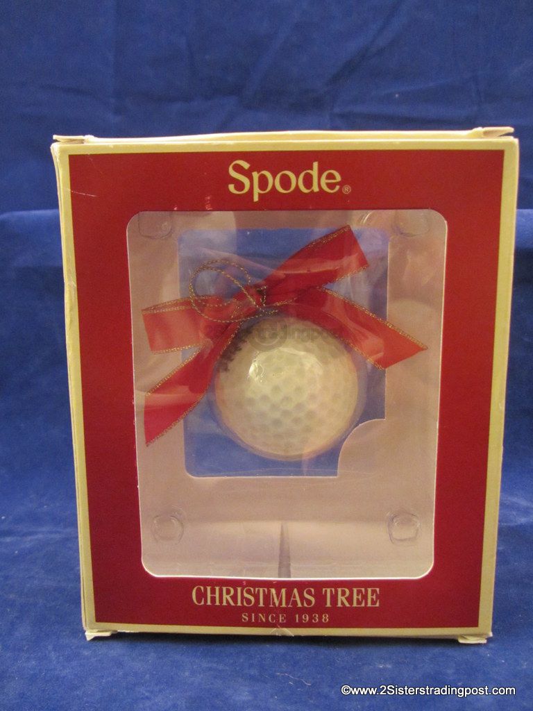 1.75" Golf Ball shaped Spode ornament. Spode Christmas tree on front