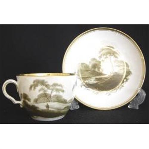 Spode Cup And Saucer c1815 Painted With landscapes Within ilt Twin Line Borders